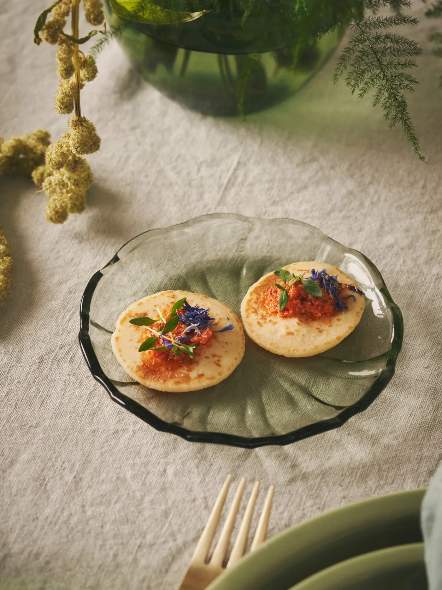 Søstrenes tallerken er lavet af glas og måler Ø14,4 cm.