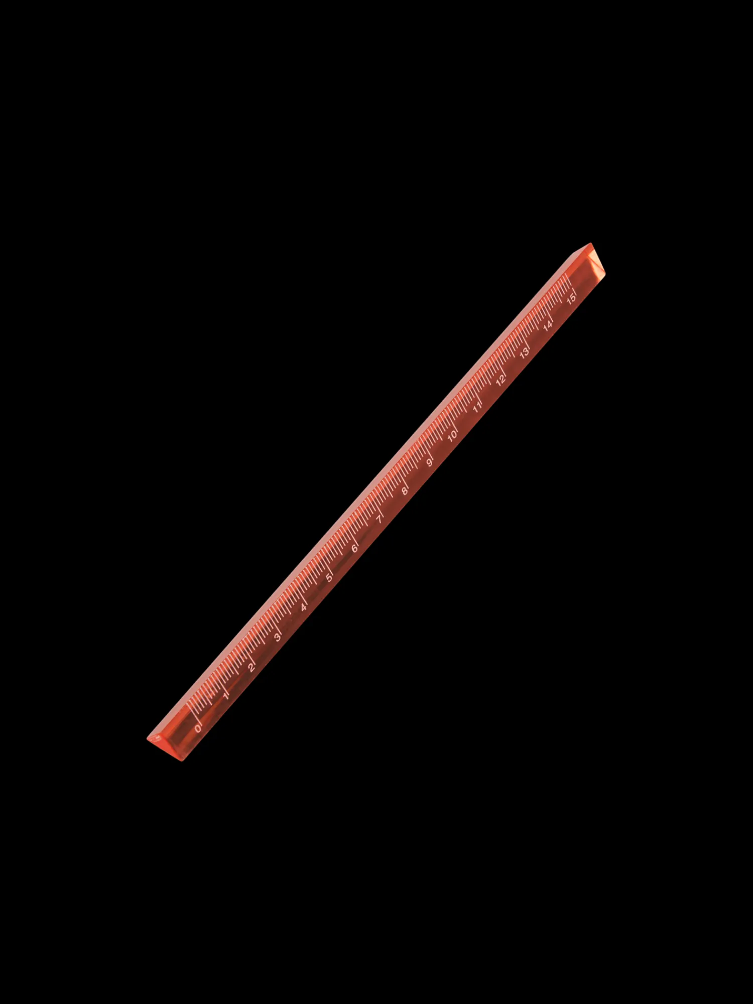 Søstrenes trekantede lineal er lavet af akryl og måler 15 cm. Formen gør den nem at håndtere.