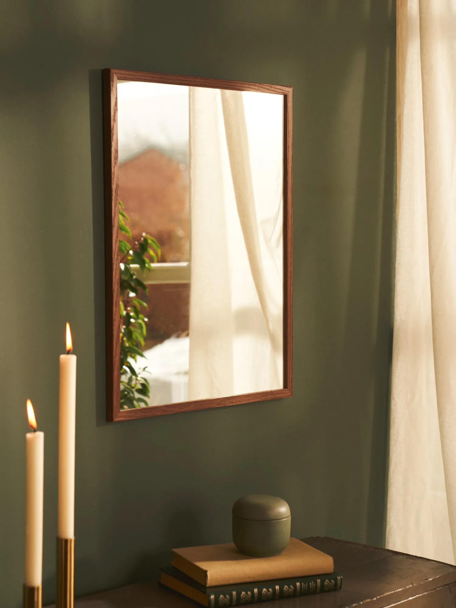 Dette skønne spejl fra danske Poster & Frame har en ramme i træ og er produceret i Danmark. Materialerne af høj kvalitet mødes i en vidunderlig forening af funktionalitet og design.Søstrene gør venligst opmærksom på, at da træ er et naturmateriale, kan rammens udtryk og farve variere en smule.