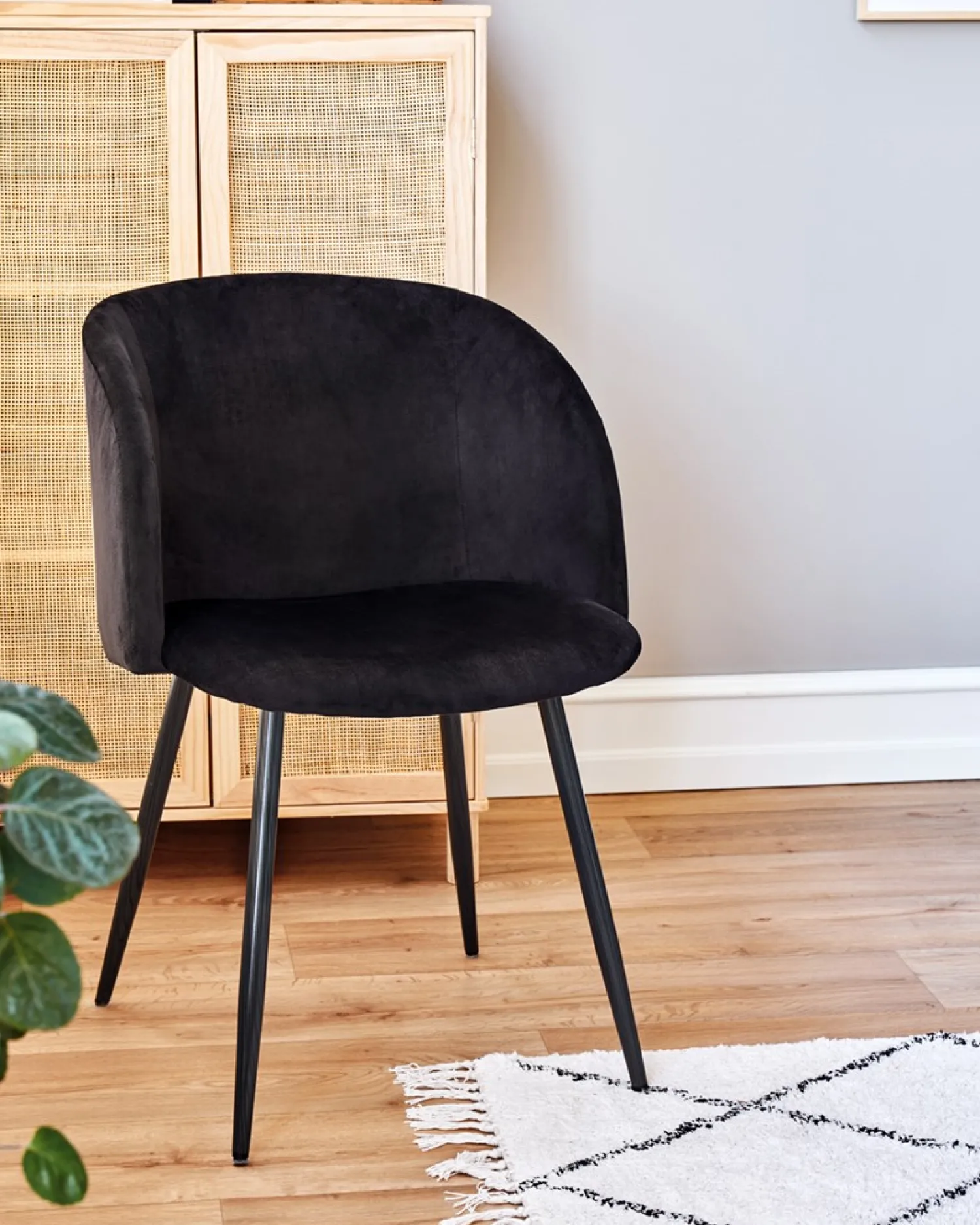 Anna og Claras spisebordsstol måler 54 x 81 cm. Den har en siddehøjde på 48 cm og en siddedybde på 47 cm. Følgende filtsko passer til denne stol:508454-001. Søstrenes velourstol vil se vidunderlig ud ved Deres spisebord, være en komfortabel stol på Deres hjemmekontor eller være et iøjnefaldende indslag i Deres læsehjørne. Den bløde følelse og strukturen af polyesteren kombineret med de tynde metalben giver stolen et elegant udtryk. *SH040 191228 TESTEX