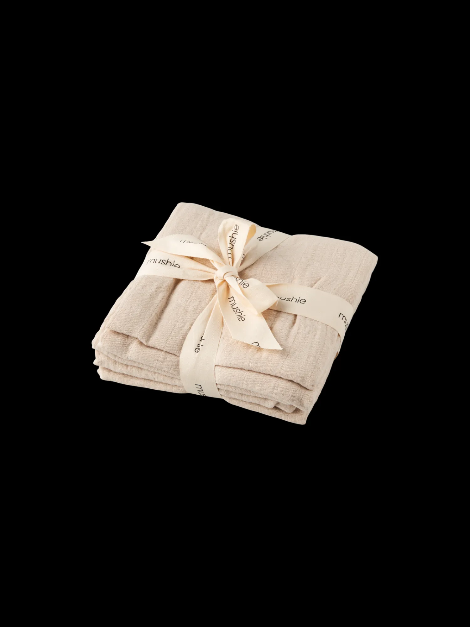 Stofbleerne fra Mushie kommer i en pakke med 3. De er lavet af bomuld og er praktiske i forskellige dagligdagssituationer, idet de både fungerer som beroligende minitæpper, pusleunderlag, til rengøring af små uheld og meget mere.