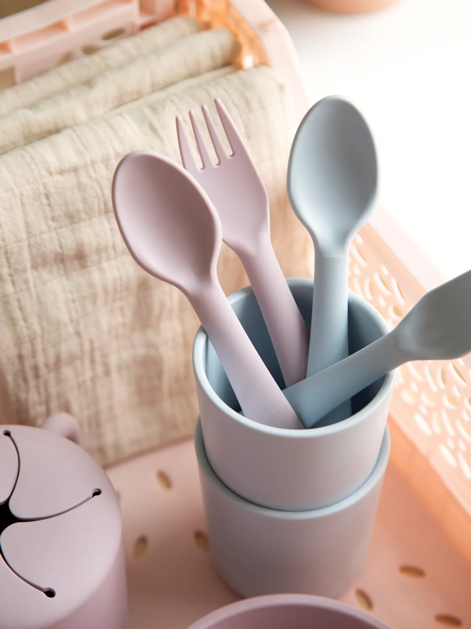 Ske og gaffel-sættet fra Mushie er enkelt og elegant. De er nemme at holde om for Deres barn. Dette sæt er fremstillet i Danmark og tåler opvaskemaskine, hvilket gør oprydningen lidt nemmere. Bemærk venligst, at produktet altid skal bruges under opsyn af en voksen. Undersøg produktet før hver brug. Afskaf ved tegn på skade eller svaghed.