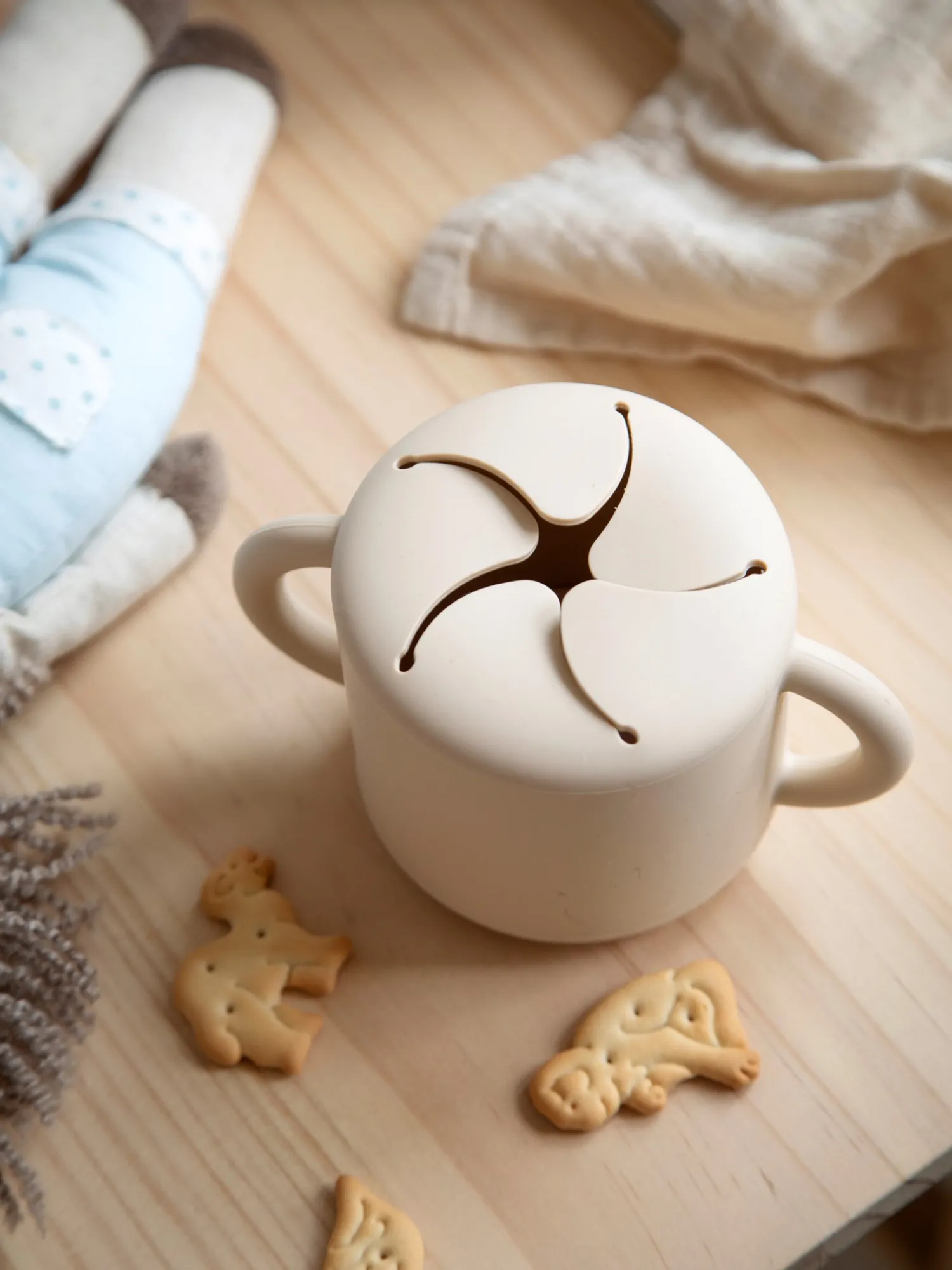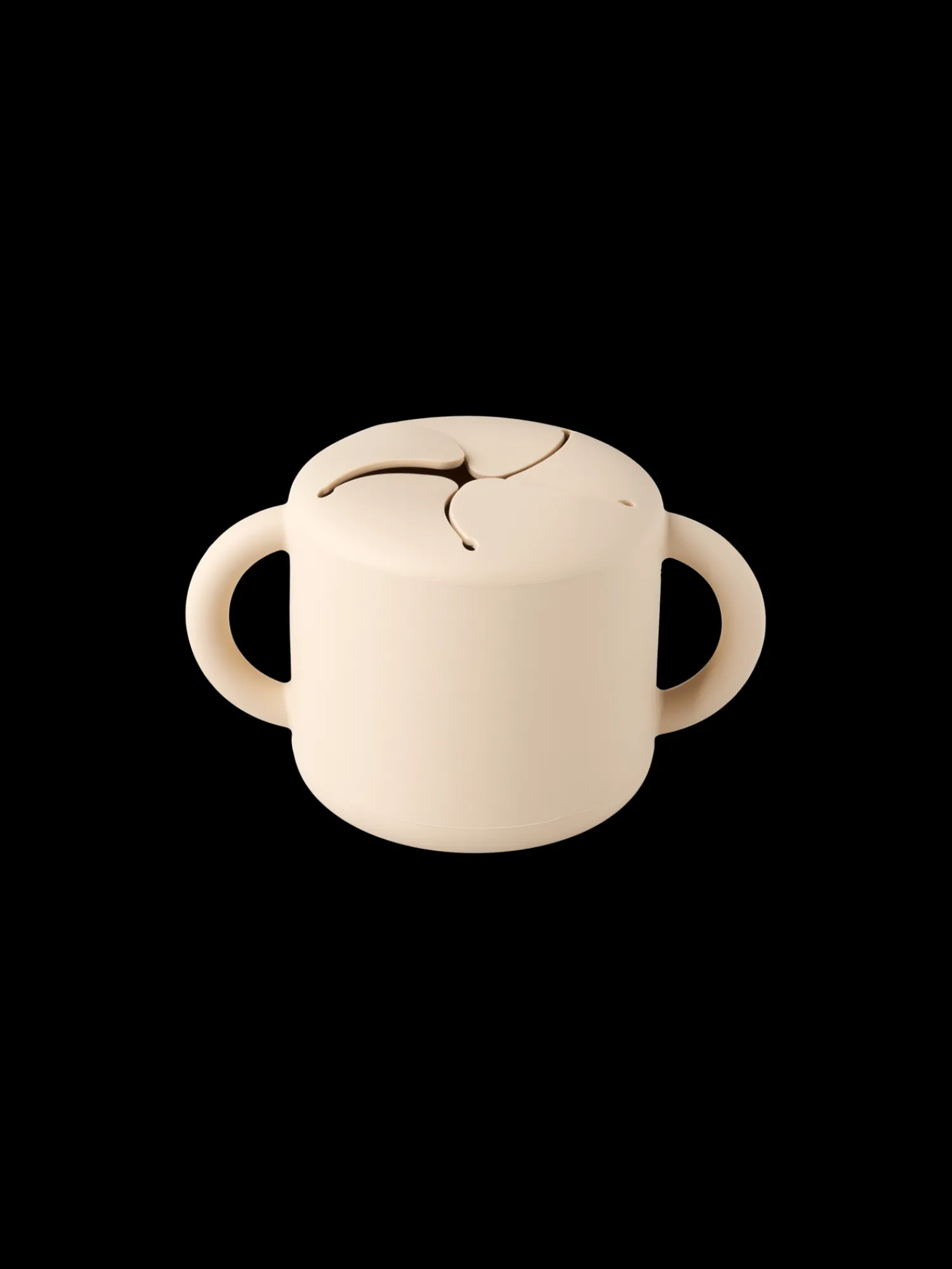Snackkoppen fra Mushie har håndtag, der gør den ganske praktisk og nem at holde for de kære små. Koppen er lavet af fødevaregodkendt silikone.Den bløde åbning sikrer, at babys hænder let kan glide ind og ud, samtidig med at maden holdes sikkert inde. Denne snackkop er en nødvendighed for småbørn på farten. Søstrene anbefaler, at snackkoppen rengøres med varmt sæbevand og lufttørres.Bemærk venligst, at produktet altid skal bruges under opsyn af en voksen. Undersøg produktet før hver brug. Afskaf ved tegn på skade eller svaghed, og efterlad aldrig et barn uden opsyn, mens barnet bruger dette produkt. Den maksimale temperatur er 392°F (200°C).
