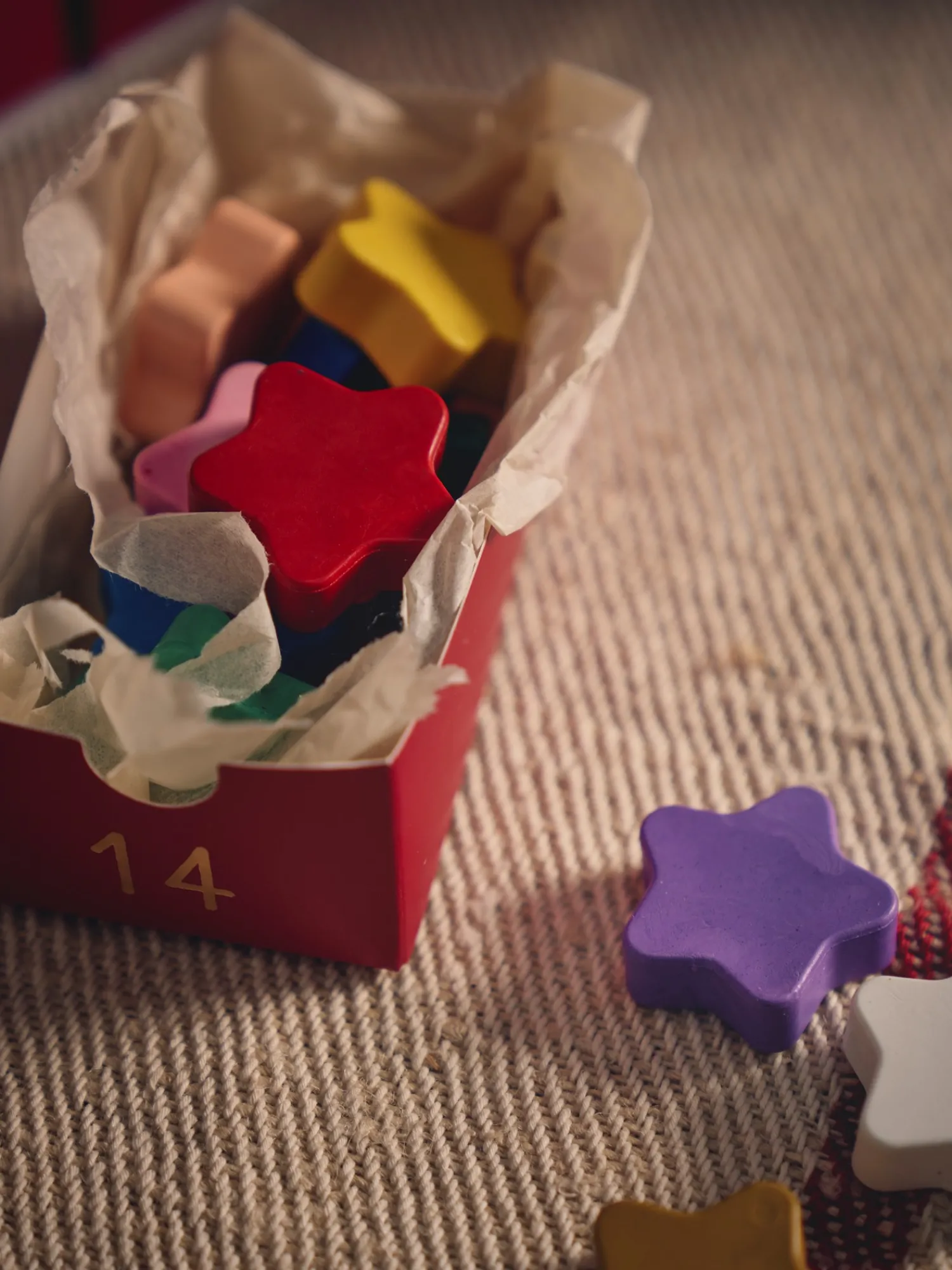 Søstrenes farvekridt er stjerneformede. Hver pakke har 12 forskellige farver.