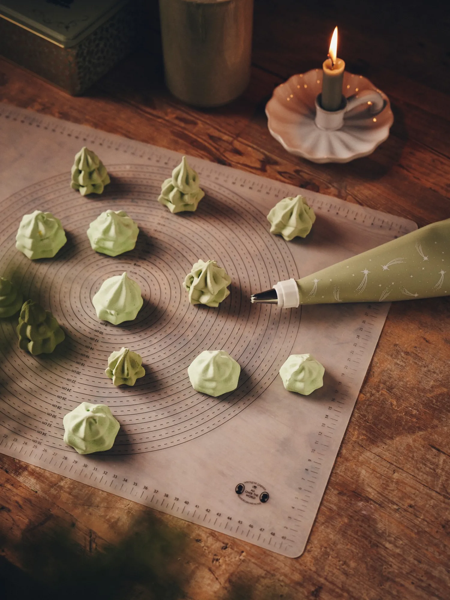 Søstrenes bagemåtte i silikone måler 50 x 40 cm og har forskellige mål på sig for præcis bagning.