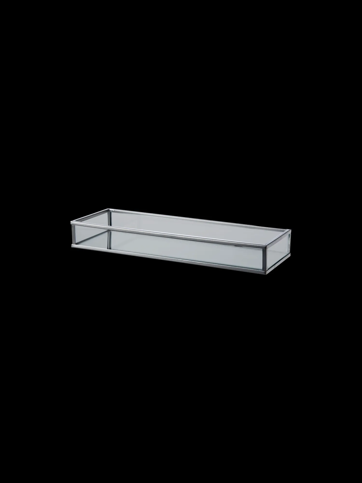 Søstrenes dekorative bakke er lavet af glas og jern og måler 9 x 24 x 3 cm.