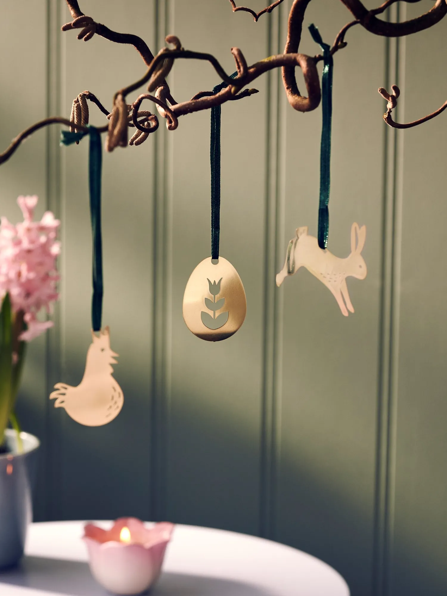 De elegante påskeornamenter fra det svenske mærke Pluto ser skønne ud når de hænger i vinduer eller måske på grene i en smuk vase, der herligt reflekterer forårets sollys.