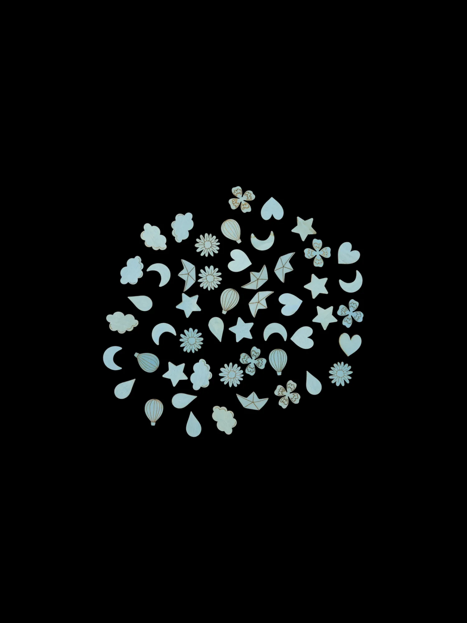 Søstrenes trækonfetti er 100 % FSC®-certificeret. En pakke indeholder 50 sjove former, der kan pifte enhver festlig lejlighed op.