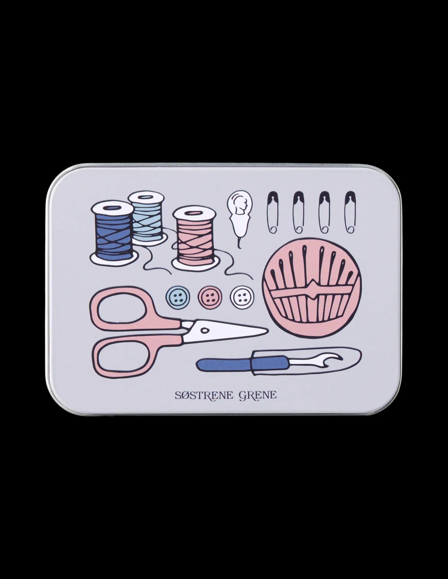 Anna og Claras sykasse af metal måler 10,5 cm i længden, 7 cm i bredden og 3,5 cm i højden. Saml alle Deres syfornødenheder i søstrenes praktiske sykasse. “Kreative sysler er nogle af livets store glæder,” som Anna ynder at sige.