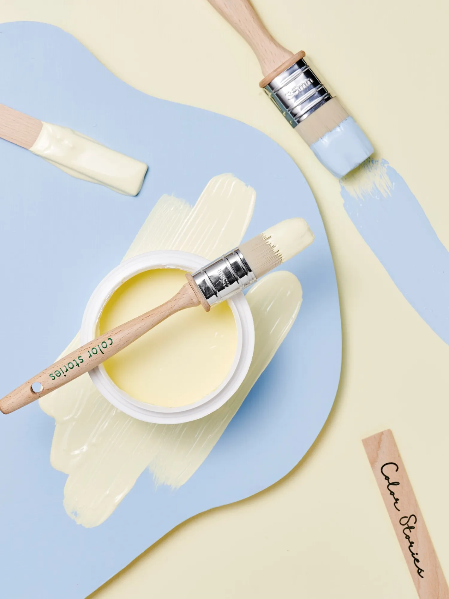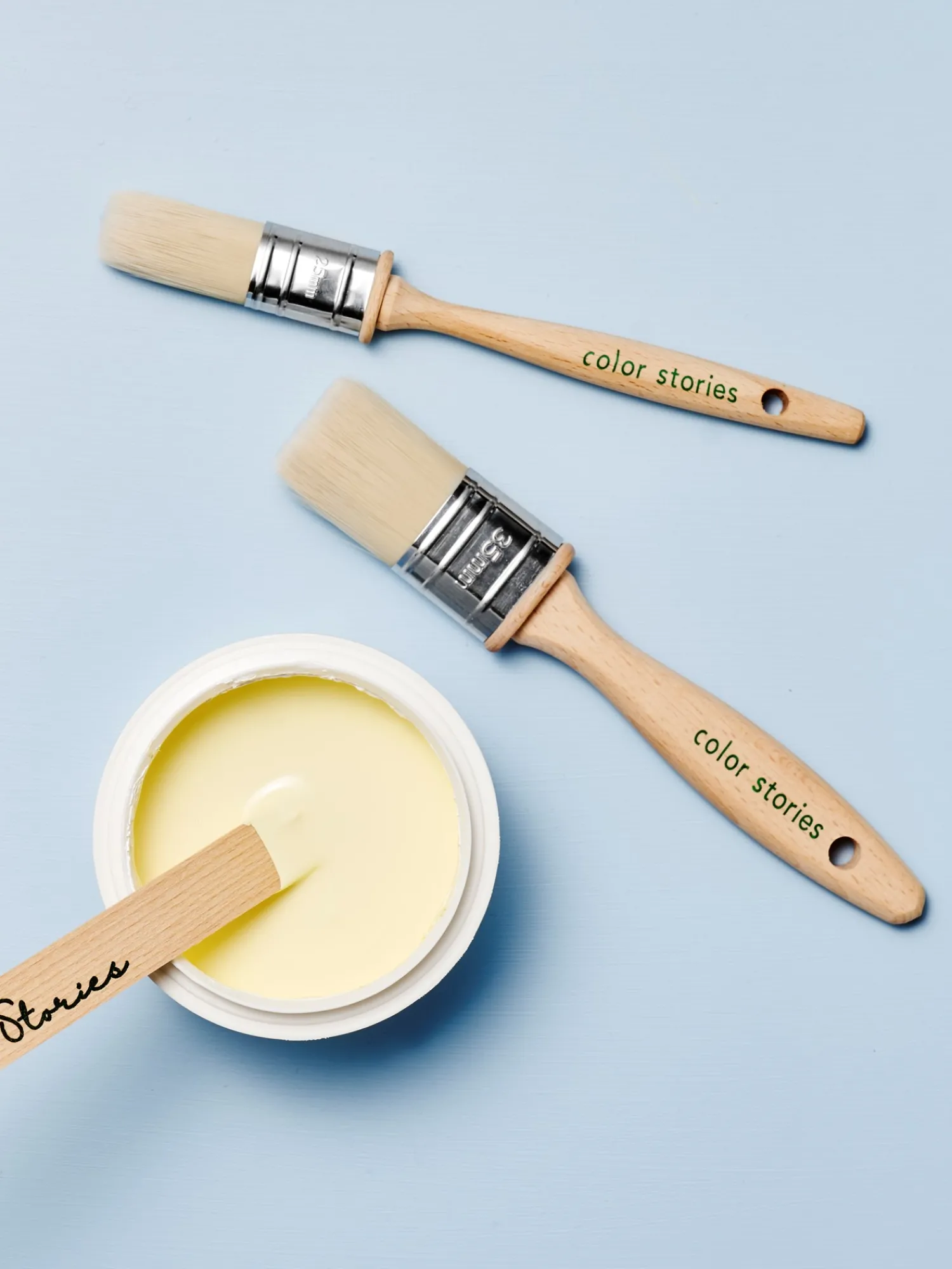 Malerpenslen fra Color Stories er lavet af bøgetræ og har polyesterbørstehår. Den måler 25 mm i bredden.”At bringe farve ind i Deres hjem er en vidunderlig måde at sætte et personligt præg på Deres interiør,” siger Anna med stor glæde. Hun er netop blevet færdig med at male to spisebordsstole i søstrenes yndlingsfarver og kigger nu på væggen i sit hobbyrum med et målrettet blik.”Bare husk at dække eventuelle overflader af, så de ikke bliver dækket af lige så meget maling som dit ansigt, kære Anna,” griner Clara. “Du har ret,” svarer hendes søster. “Og vi skal også huske at rengøre penslerne efter brug, så de er klar til det næste, farverige projekt.”De kan finde en maleguide på søstrenes Color Stories-brandside.