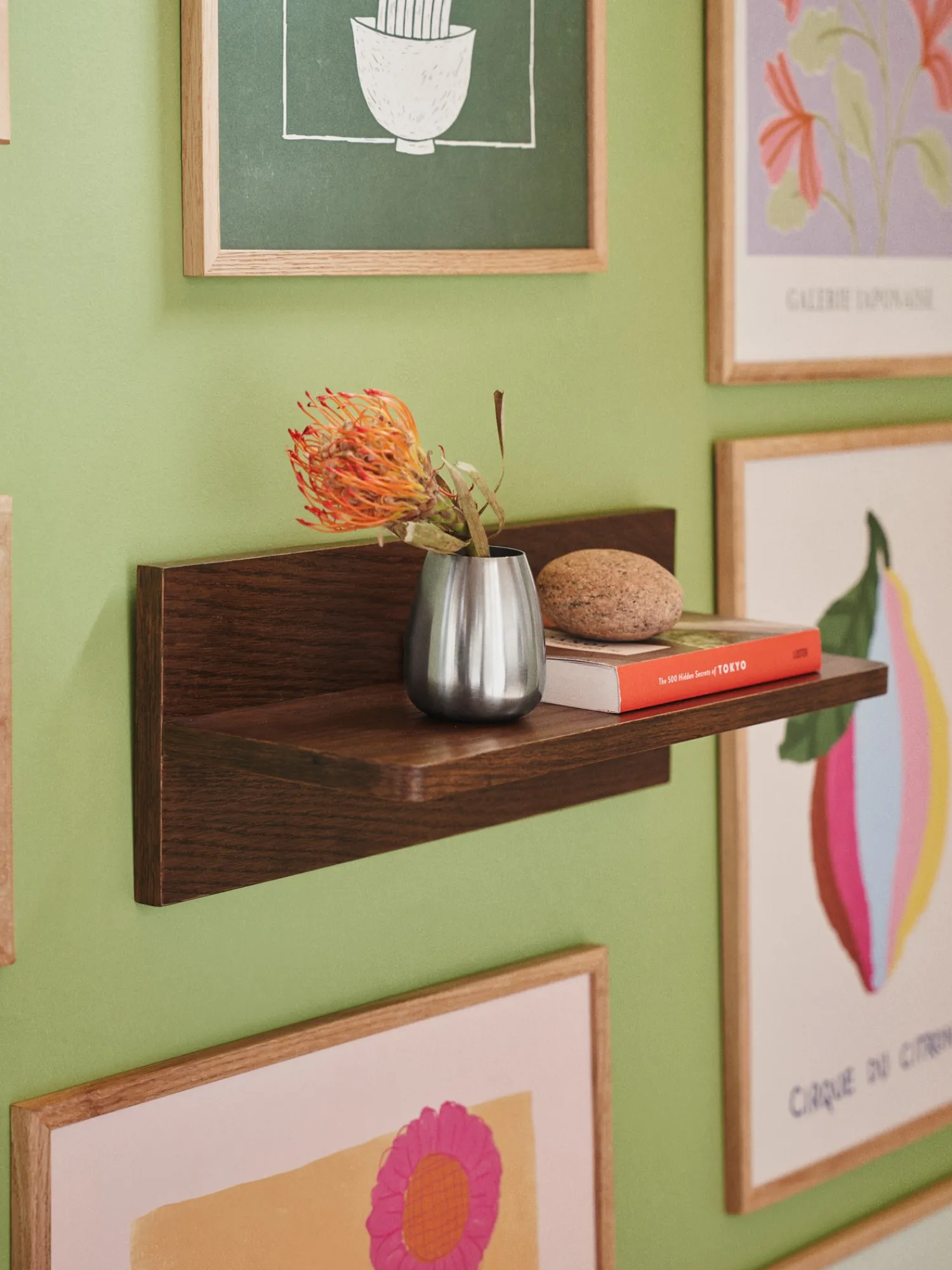 Søstrenes væghylde er lavet af FSC®-certificeret egetræsfiner og MDF. Den måler 40 x 15 x 15 cm.Hylden leveres med skruer, med De bedes venligst kontakte Deres lokale byggemarked og konsultere dem om de rigtige rawplugs til Deres vægge.