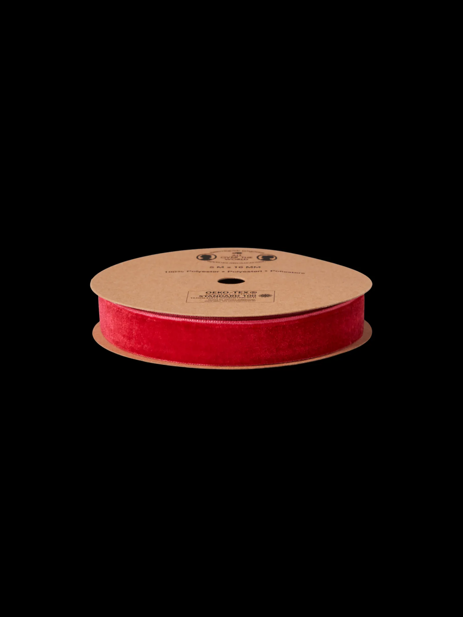 Søstrenes fløjlbånd STANDARD 100 by OEKO-TEX®-certificeret. Det måler 16 mm i bredden og 5 m i længden.