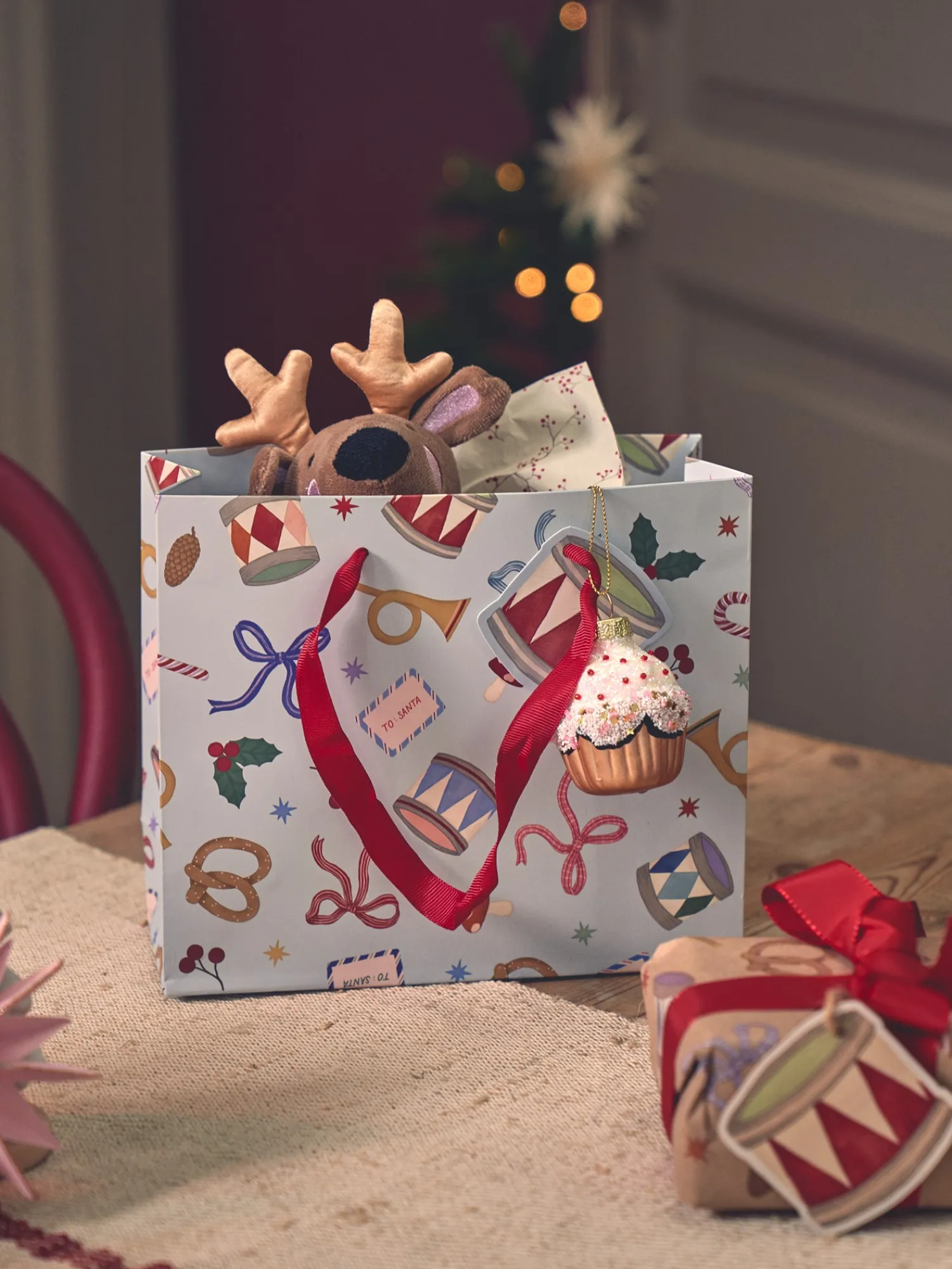 Søstrenes gavepose er lavet af FSC®-certificeret papir og har en hank og et påsat gavemærke. Gaveposer kan genbruges til enhver festlig lejlighed, eller kan bruges af modtageren som en skøn opbevaringsløsning.