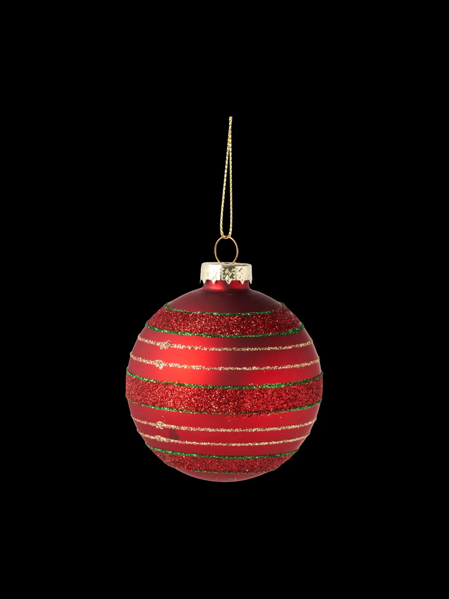 Søstrenes julekugle er lavet af glas og har en diameter på 7 cm.