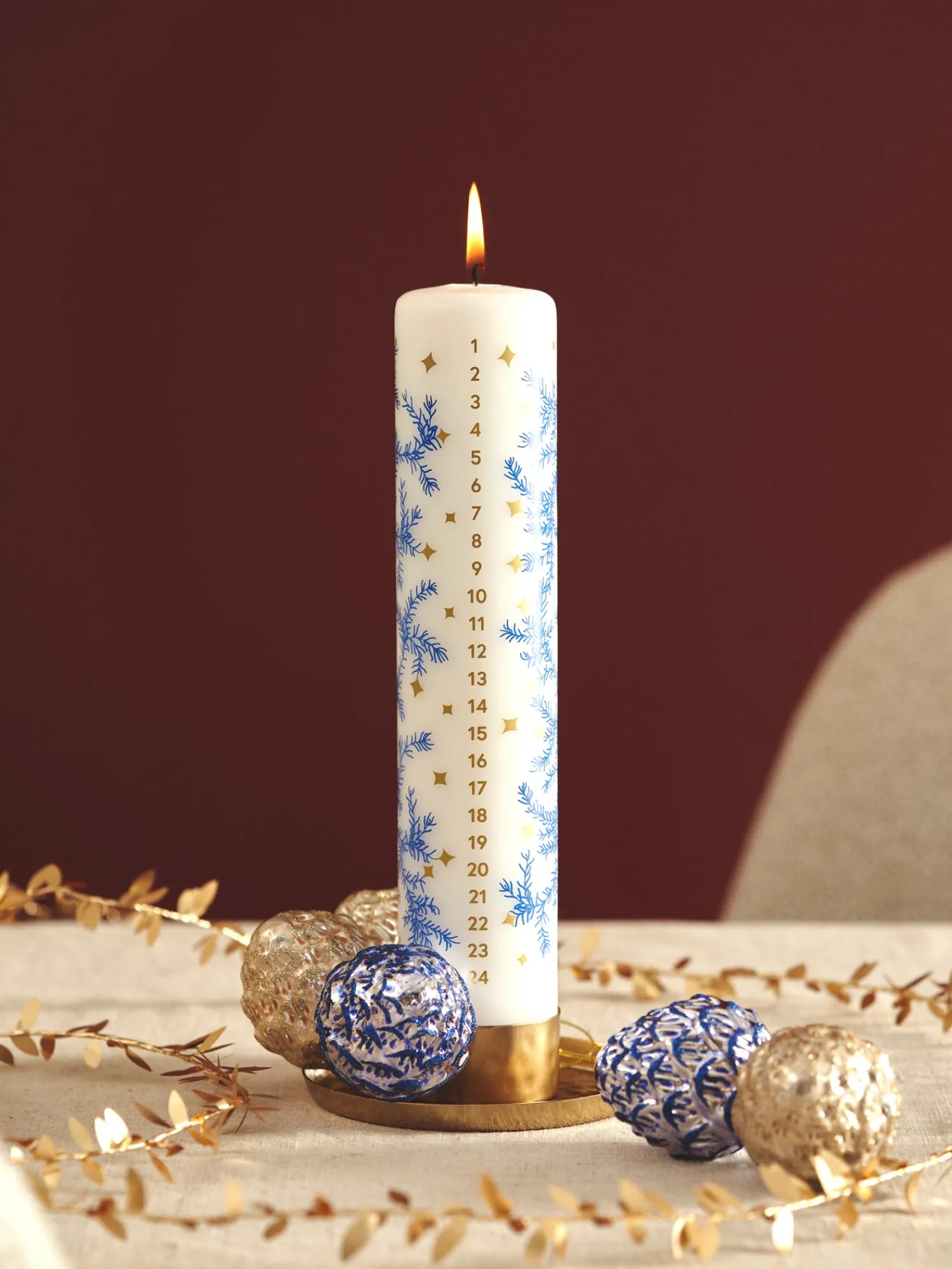 Søstrenes kalenderlys har tallene fra 1 til 24, så De kan tælle ned til juleaften. Lyset har en estimeret brændetid på 60 timer.