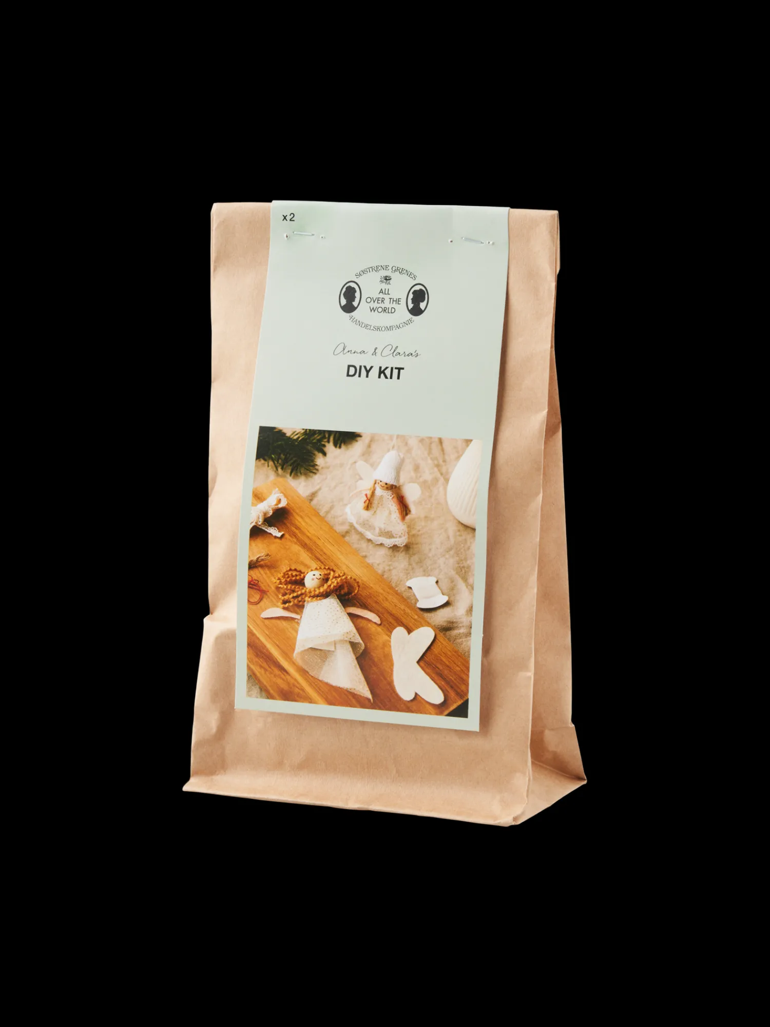 Søstrenes jule-DIY-sæt indeholder materialer til at lave to fine engle. Perlerne til hovederne er lavet af FSC®-certificeret træ.
