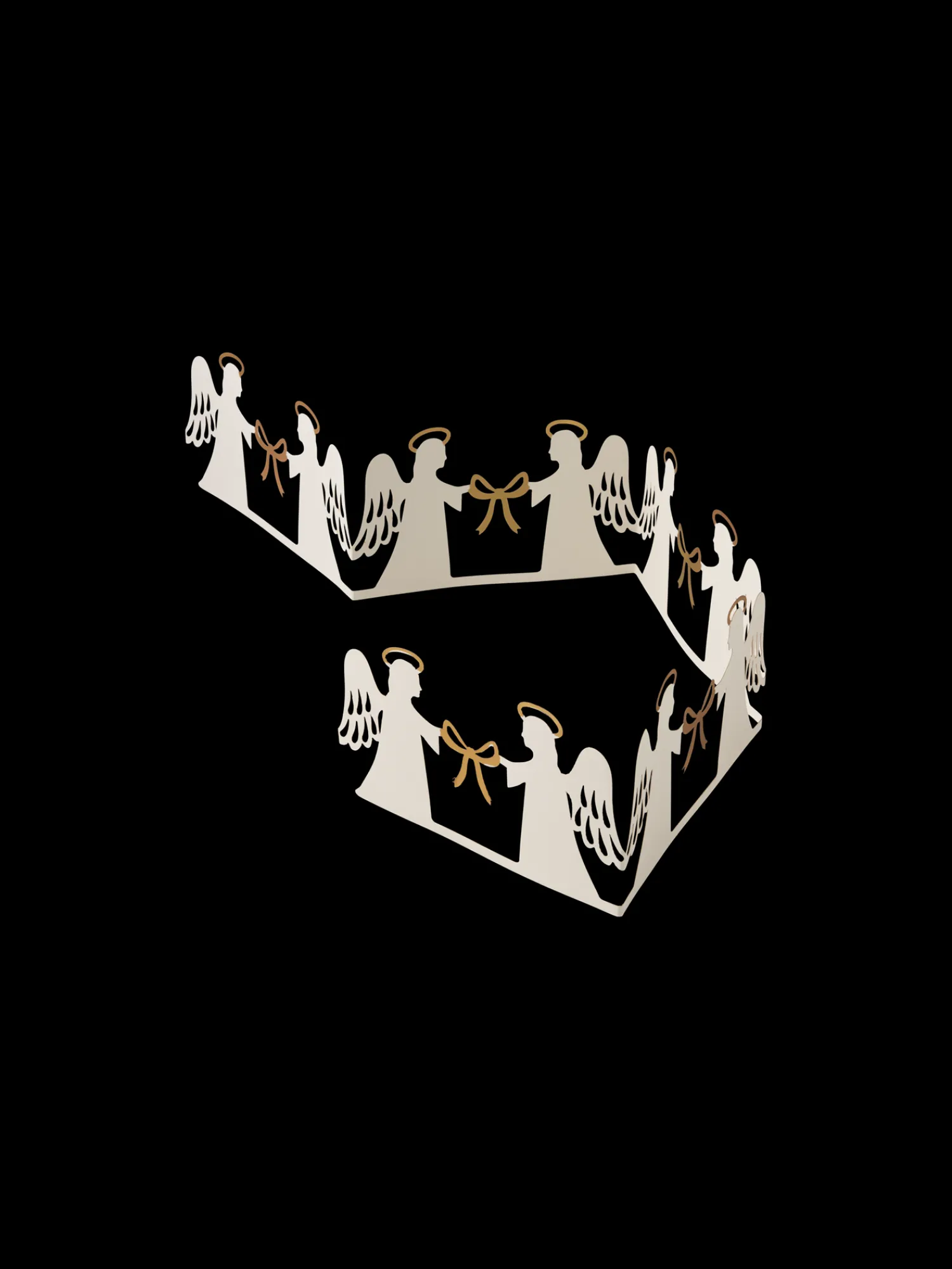 Søstrenes borddekoration af papir med festlige engle er FSC®-certificeret. Den kan foldes ud og bruges til at pryde bordplader, hylder eller andre overflader i Deres hjem. Efter brug kan den foldes sammen og opbevares indtil næste år.