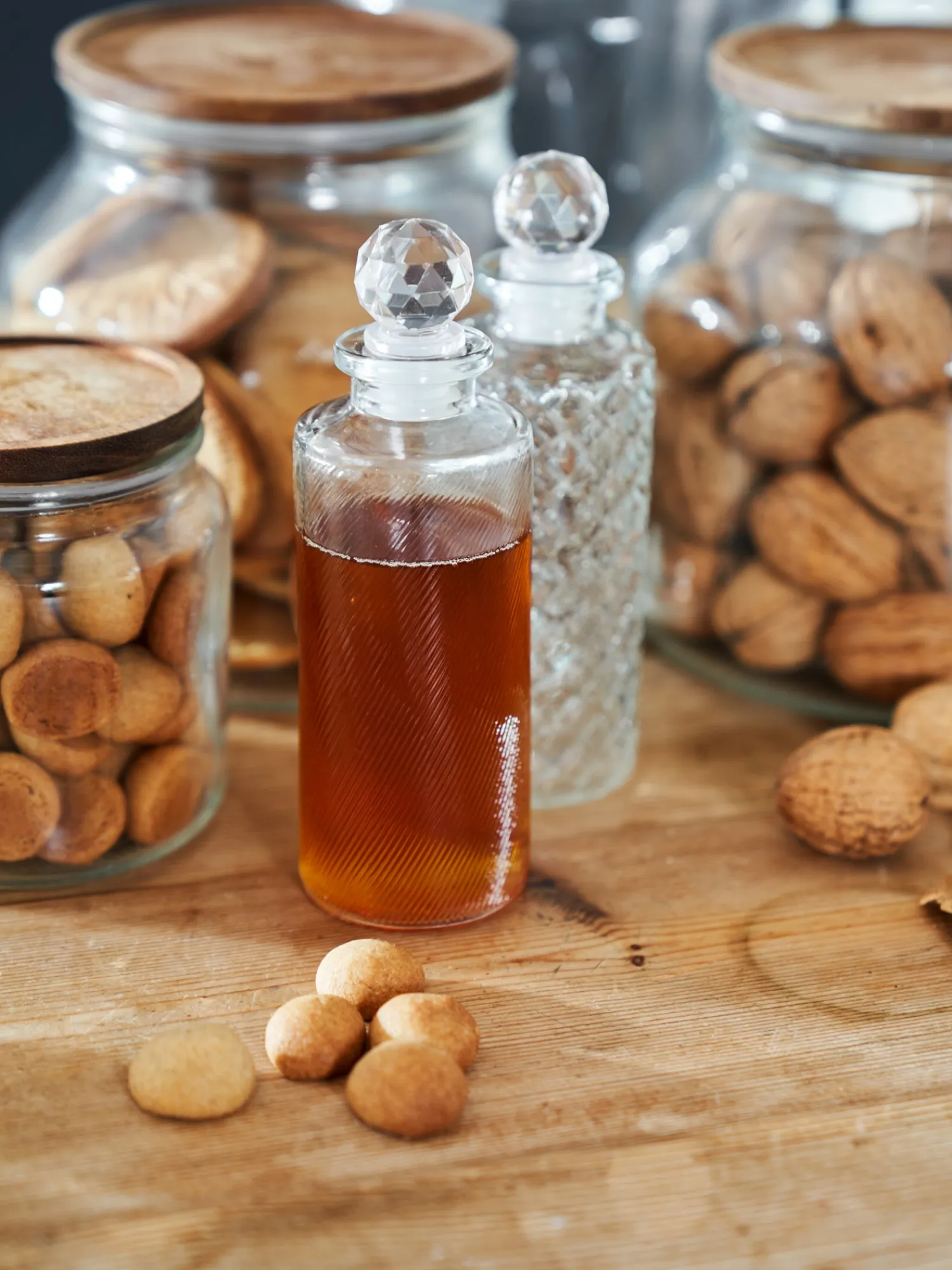 Søstrenes flaske er lavet af glas og er ideel til opbevaring af hjemmelavet juice eller olier.