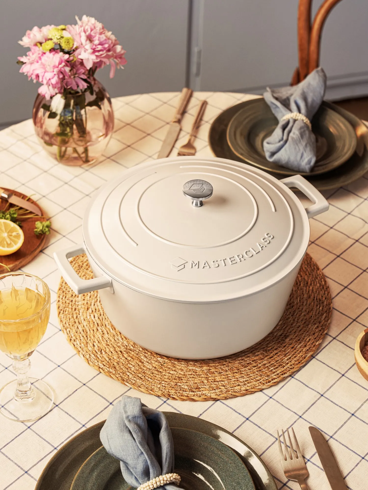 Denne gryde fra MasterClass er lavet af støbt aluminium, et lettere materiale end støbejern, der gør det muligt at tilberede mad hurtigt og jævnt. Den har en kapacitet på 4 liter. Bunden i rustfrit stål gør den nem at bruge på enhver kogeplade, inklusiv induktion, og gryden tåler ovn op til 200 °C. Gryden har et greb og to håndtag samt et låg, der fanger damp som det ophober sig, så madlavningsoplevelsen bliver bedre. Den har en robust ridsefast 2-lagsbelægning, der fungerer som non-stick, hvilket også gør gryden lettere at rengøre. Blandt andet ved at den tåler vaskemaskine.