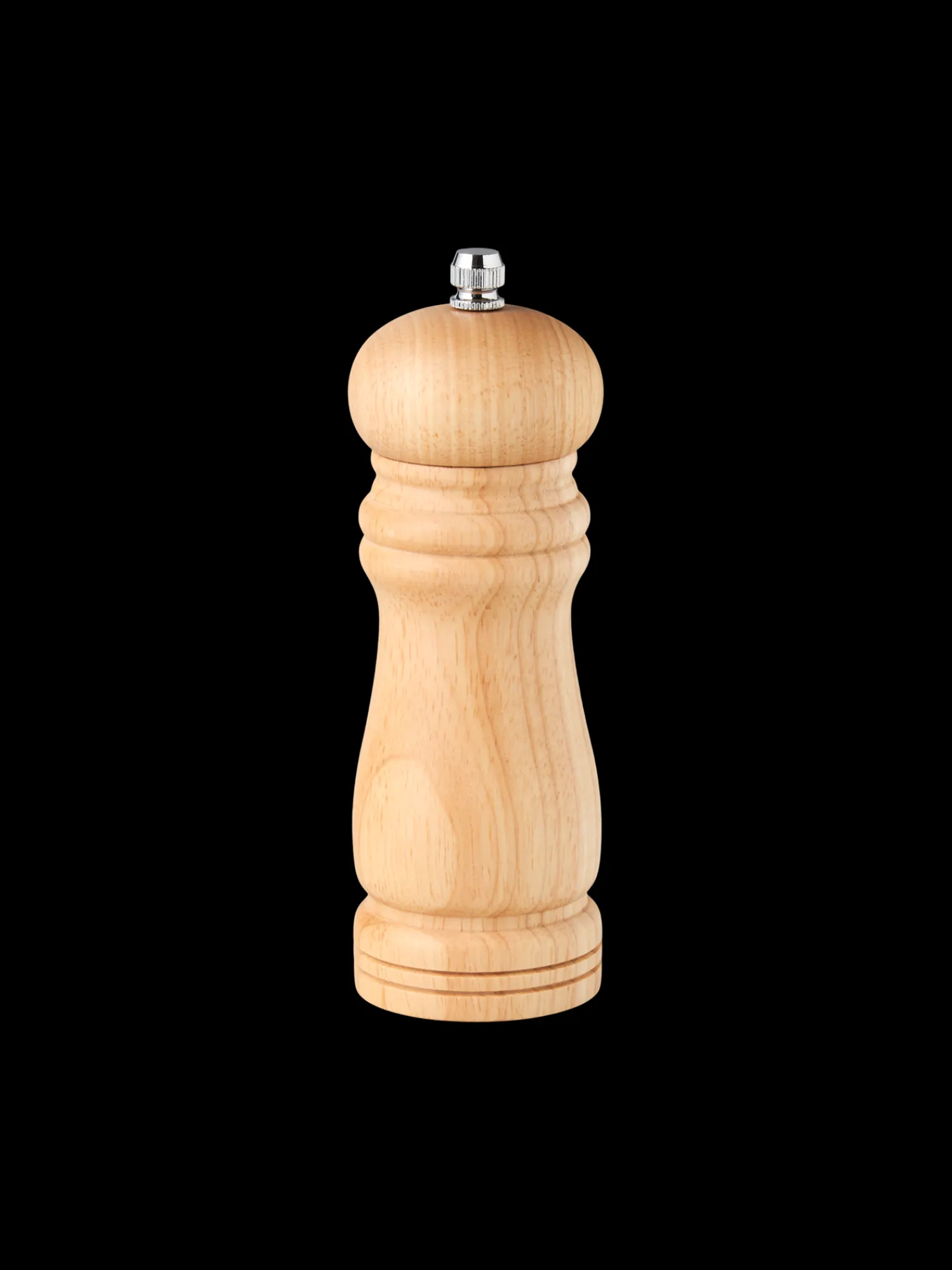 Søstrenes kværn til salt eller peber er lavet af 100 % FSC®-certificeret gummitræ samt keramik og polypropylen. Det måler Ø5 x 15 cm.