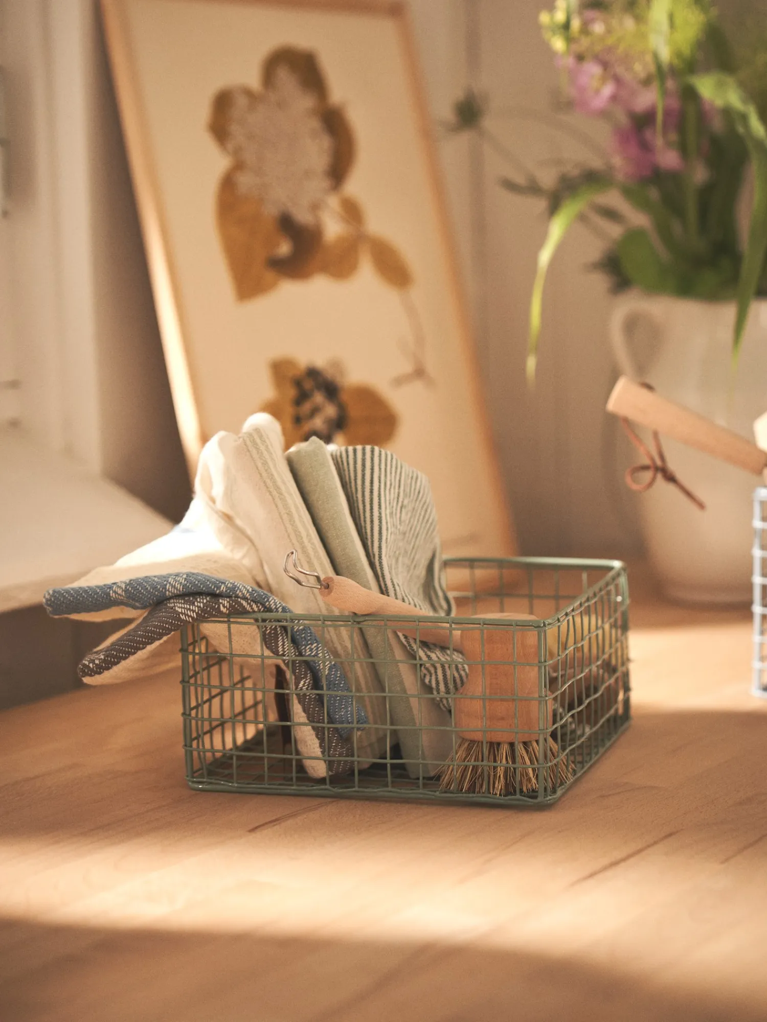Søstrenes metaltrådskurv er en dejlig opbevaringsløsning til hjemmet.