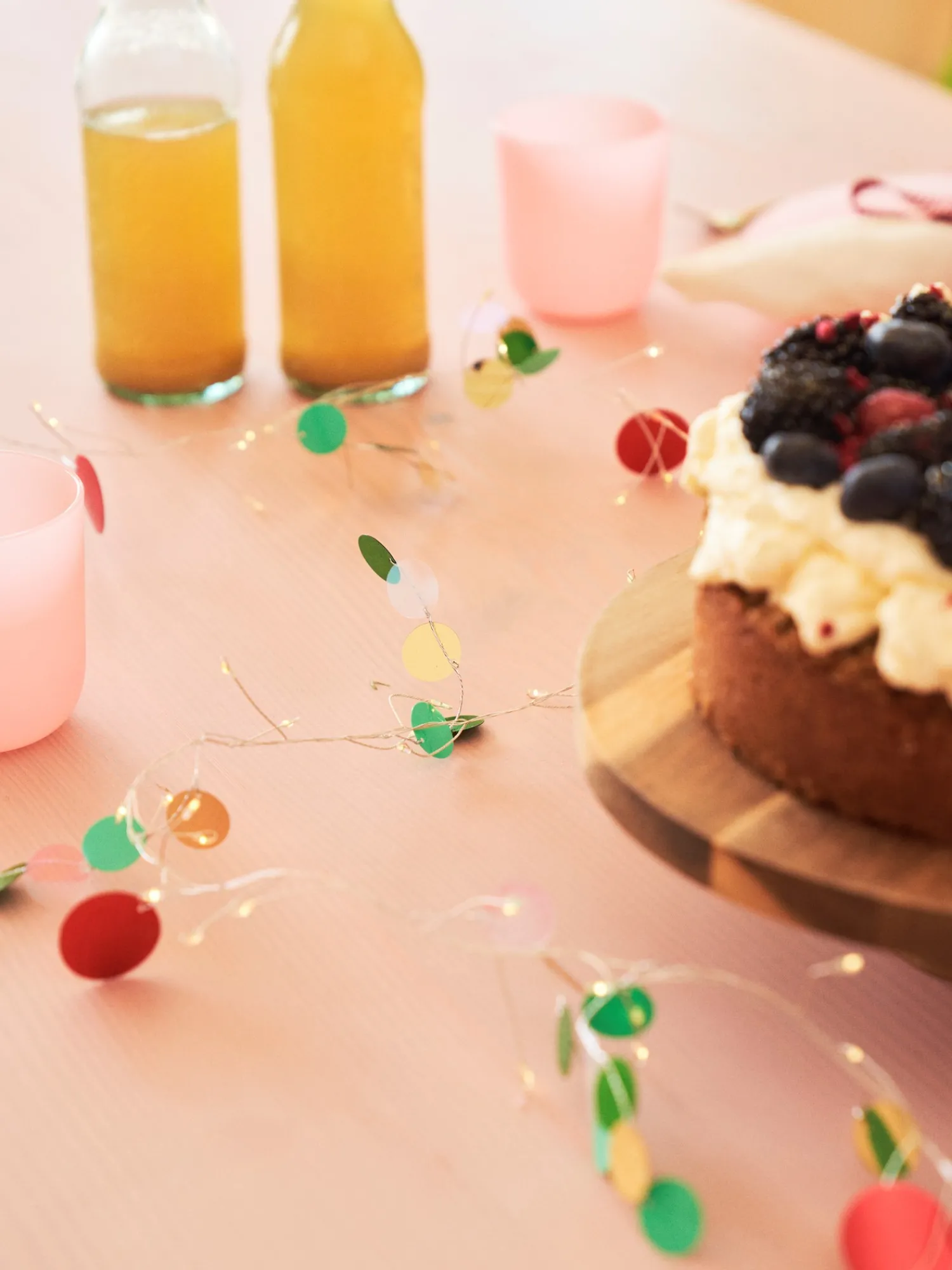 Søstrenes farverige lyskæde kan sætte et sjovt præg på festlighederne ellerblot lyse Deres hjem eller uderum op og tilføje et strejf af hygge. Søstrene minder venligst om, at lyskæden kræver 3 AA-batterier, som ikke medfølger.