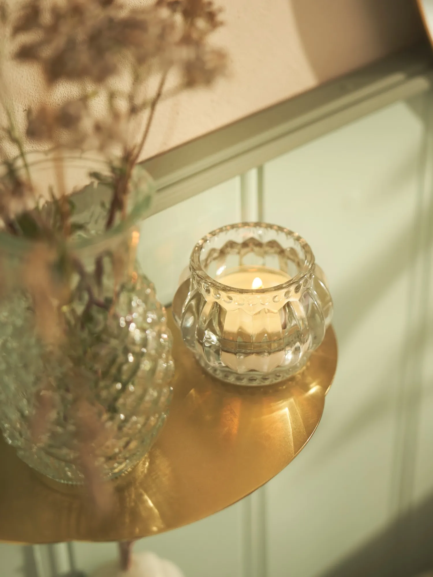 Søstrenes fyrfadsstage har et krystalmønster, der giver et fortryllende lysspil.