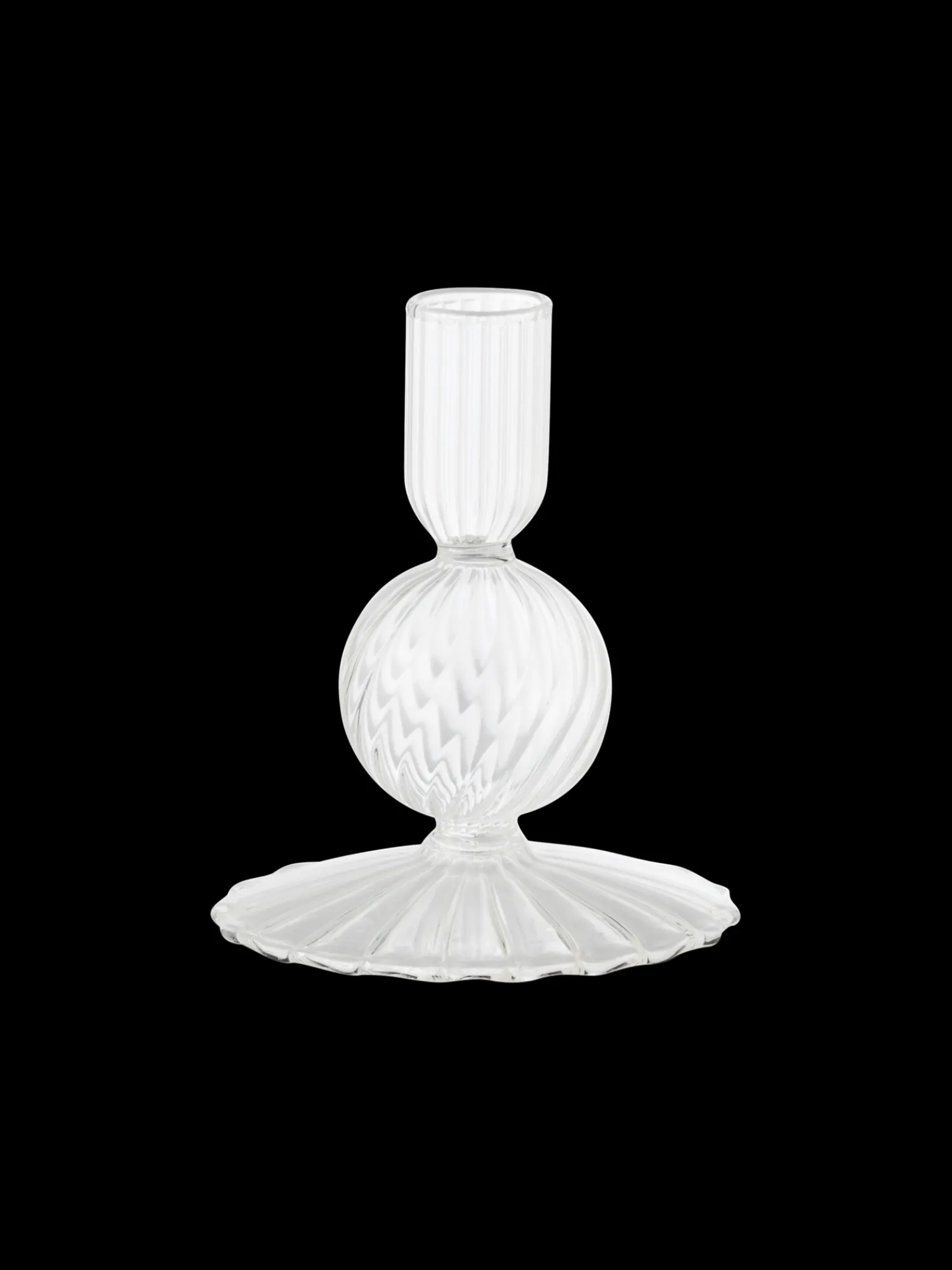 Søstrenes lysestage i glas måler 9 cm i diameter og 11 cm i højden.