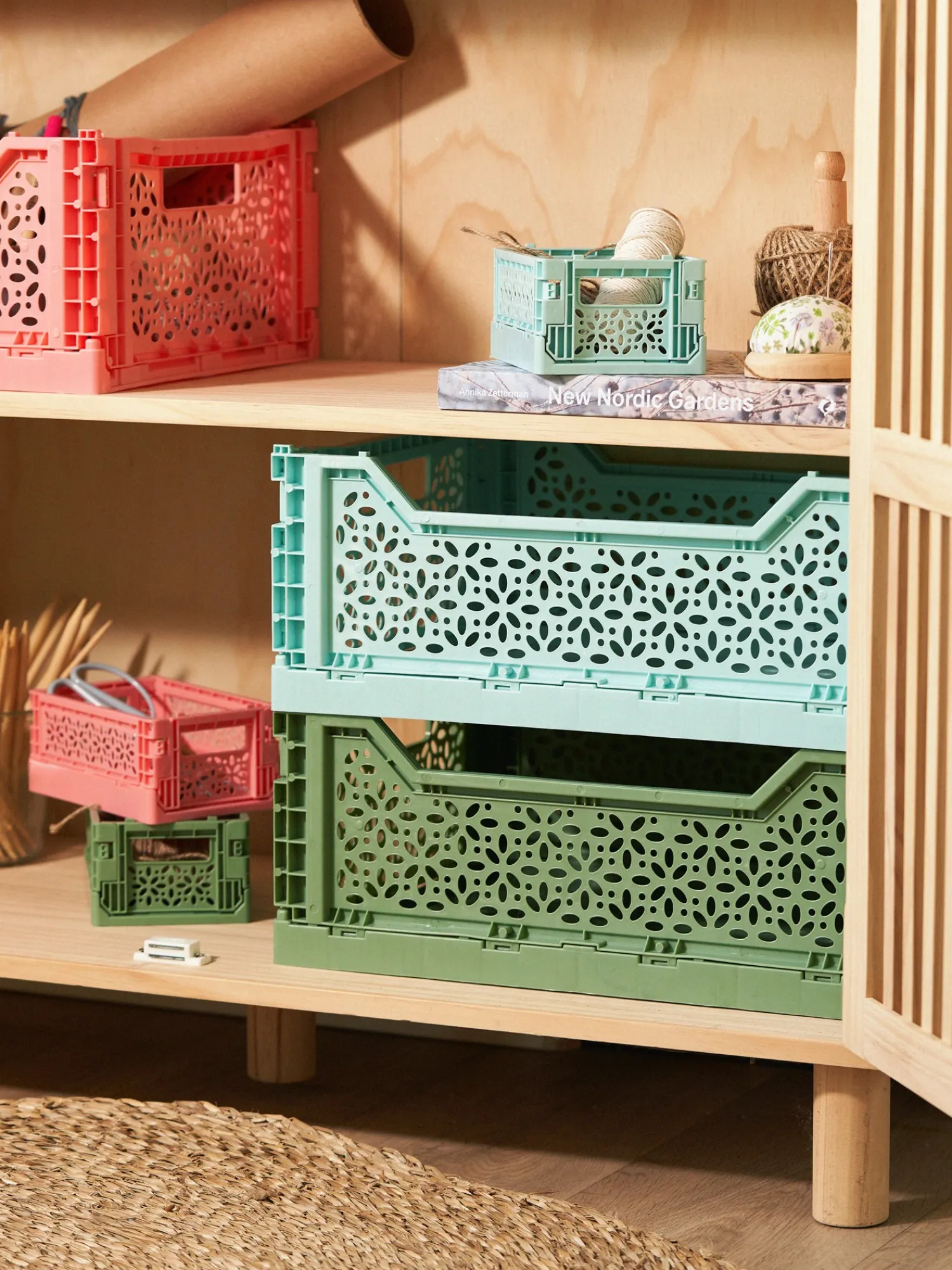 Søstrenes foldekasse er lavet af 60 % GRS-certificeret* genanvendt polypropylen og måler 40 x 30 x 15 cm.Det er en praktisk opbevaringsløsning, da den kan foldes sammen, når den ikke er i brug.*Certified by Ecocert Greenlife, license number 197533