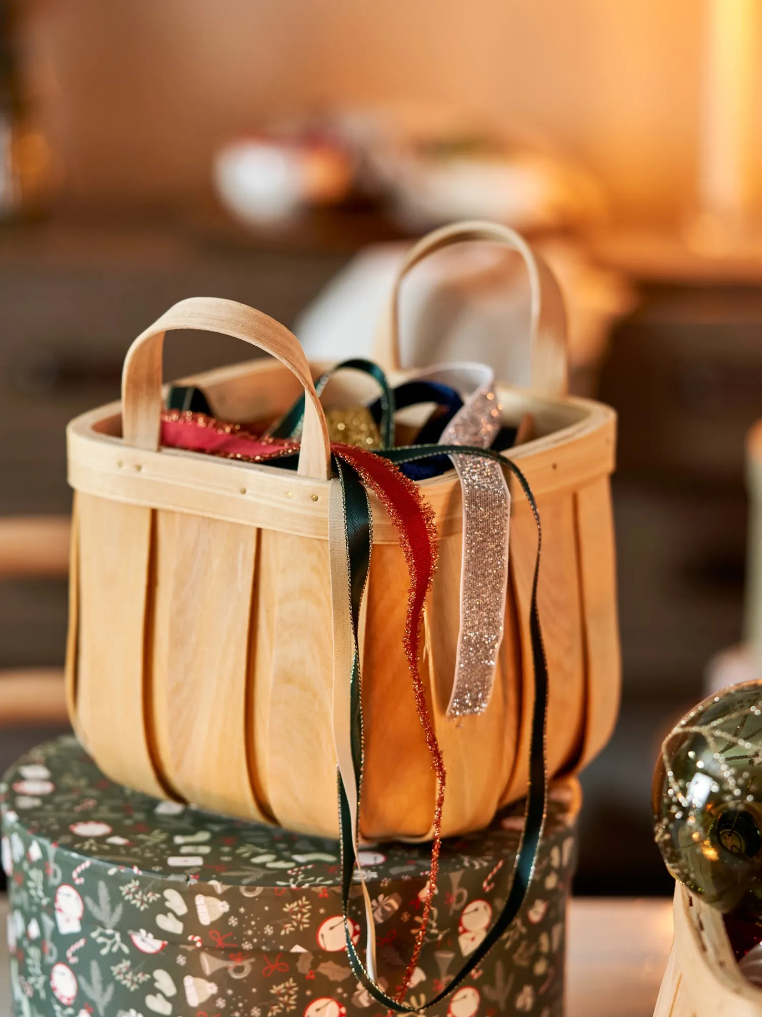 Søstrenes kurv er lavet af FSC®-certificeret spåntræ og måler 16 x 16 x 14 cm.”Praktiske opbevaringsløsninger kan være et vidunderligt, dekorativt element i Deres indretning,” siger Clara, mens hun placerer den skønne kurv på en hylde i søstrenes hobbyrum.Da kurven er lavet af naturlige materialer, gør søstrene venligst opmærksom på, at den kan variere en smule i størrelse.