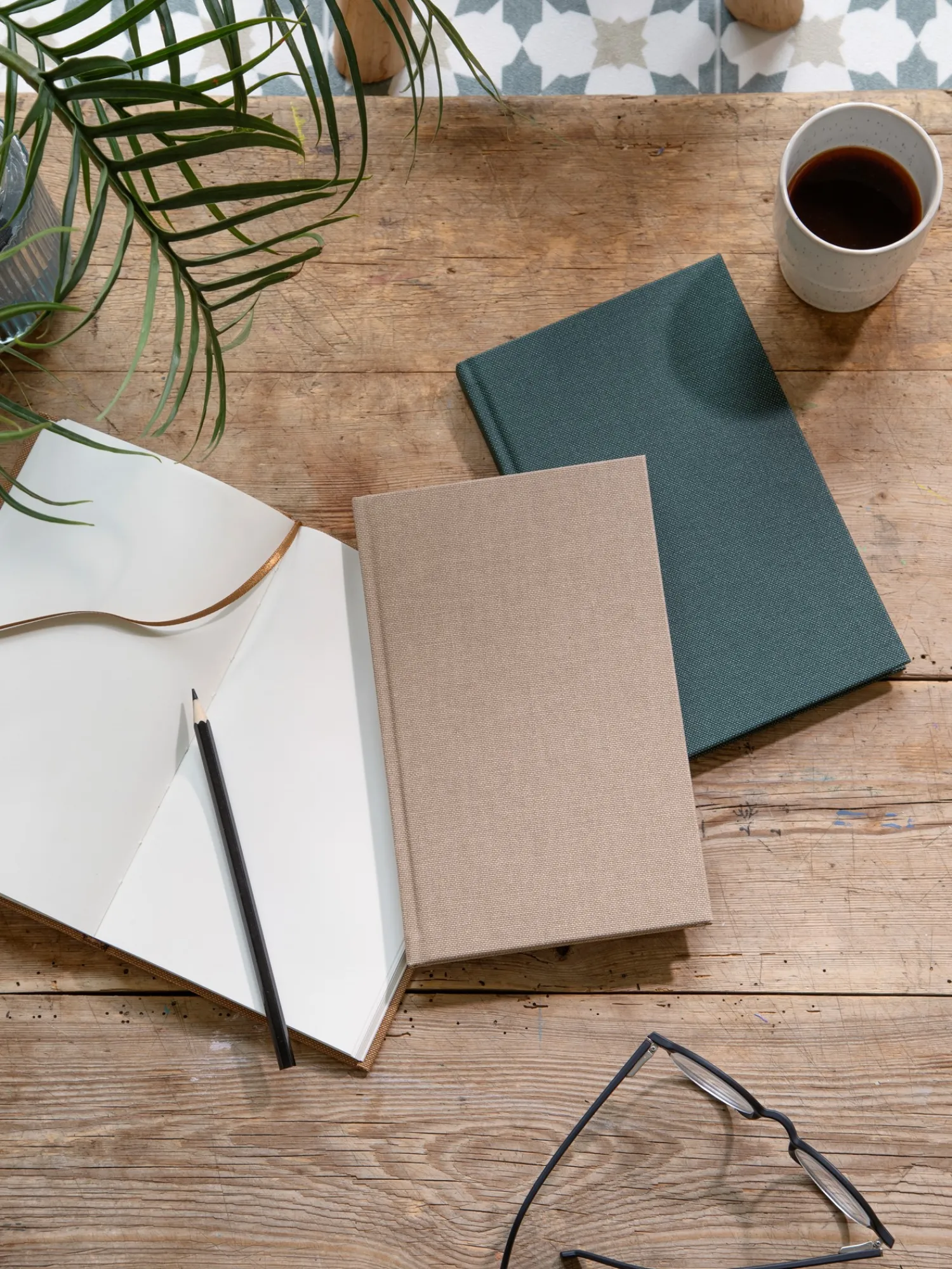 Denne smukke hardcover notesbog har 80 linjerede sider med en synlig rygsøjle.
