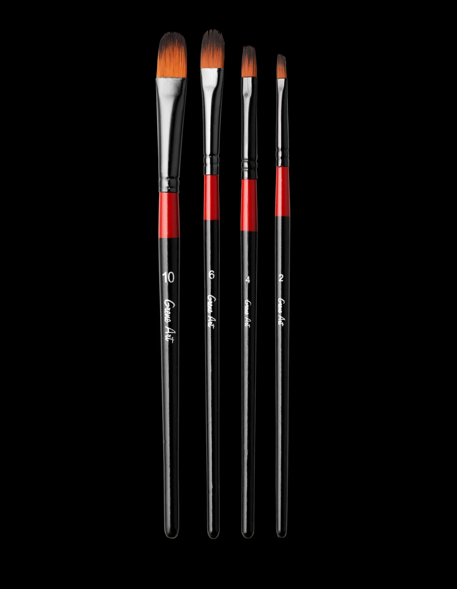 Anna ynder at udfolde sin kreativitet gennem malerier og kreere hjemmelavet kunst til væggene. Når hun starter et nyt malerprojekt, finder hun penslerne frem og sætter sig godt til rette ude i søstrenes atelier. Hun lader kreativiteten strømme og minder sig selv om, at selv de helt store kunstværker startede med ét enkelt penselstrøg.Anna tyer ofte til pensler i forskellige størrelser, da de tillader at male alt fra små detaljer til bredere penselstrøg. Derfor er der i Annas penselsamling flere penselsæt, hvor ét af dem er disse filbert pensler med nylonhår. Penslernes nylonhår består af syntetiske fibre, der efterligner naturhårs karakteristika. Penslerne er i størrelse 2, 4, 6,10 og er i særdeleshed velegnet til akrylmaling og gouache.