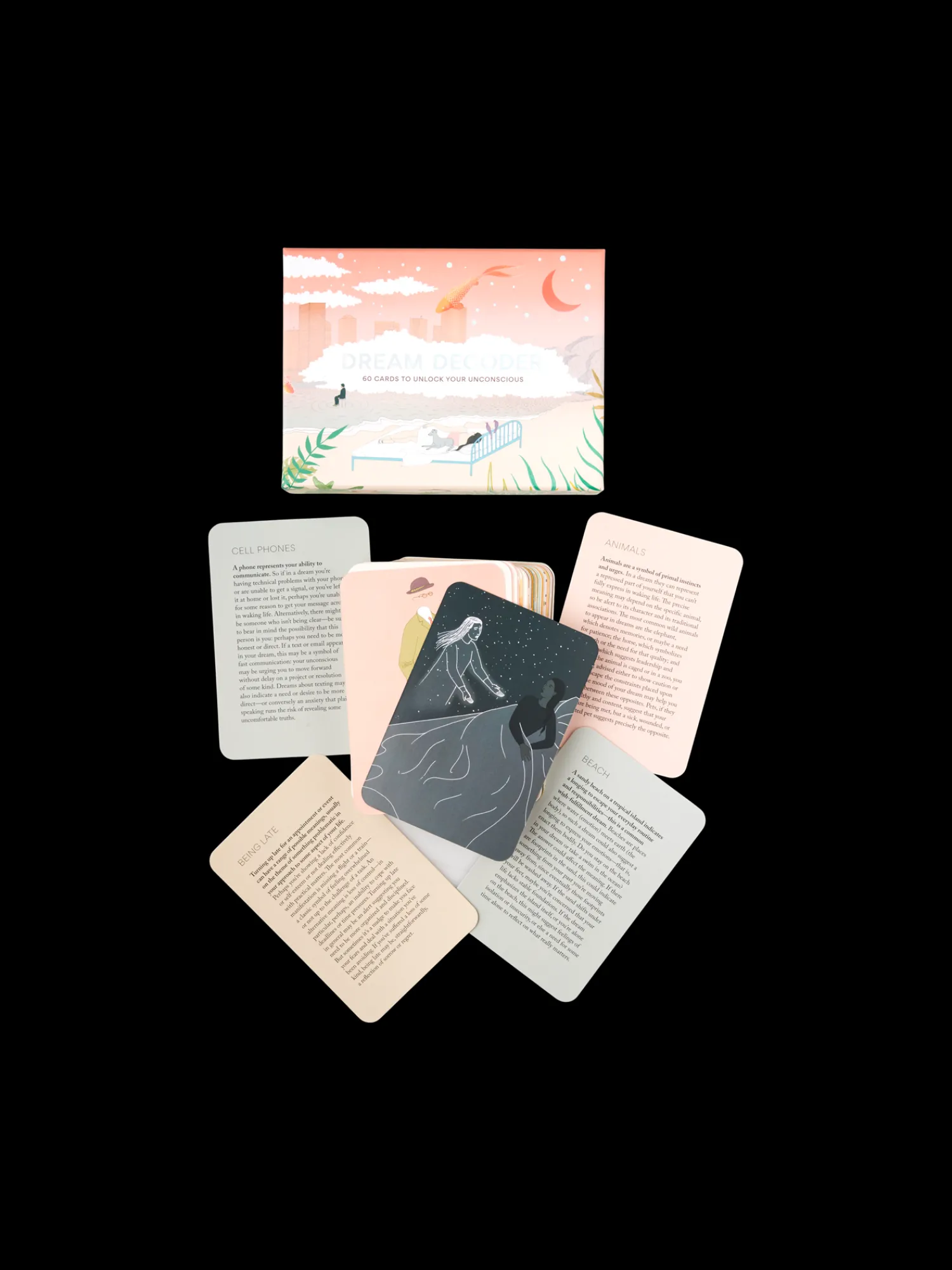 Søstrene gør Dem venligst opmærksom på, at denne vare kun forhandles online.De smarte kort giver Dem 60 forklaringer på de hyppigste drømme, hvilket kan hjælpe med at afkode, hvad Deres underbevidste jeg fortæller Dem. Når De forstår Deres drømme, kommer De måske til at forstå Dem selv lidt bedre. Kortspillet inkluderer idéer til, hvordan De kan bruge kortene, både hvis De er én eller flere personer, der deltager.”Hvad mon det betyder?” spekulerer Anna, idet hun vågner efter en nat fyldt med drømme. “Måske prøver mit underbevidste jeg at fortælle mig noget?”