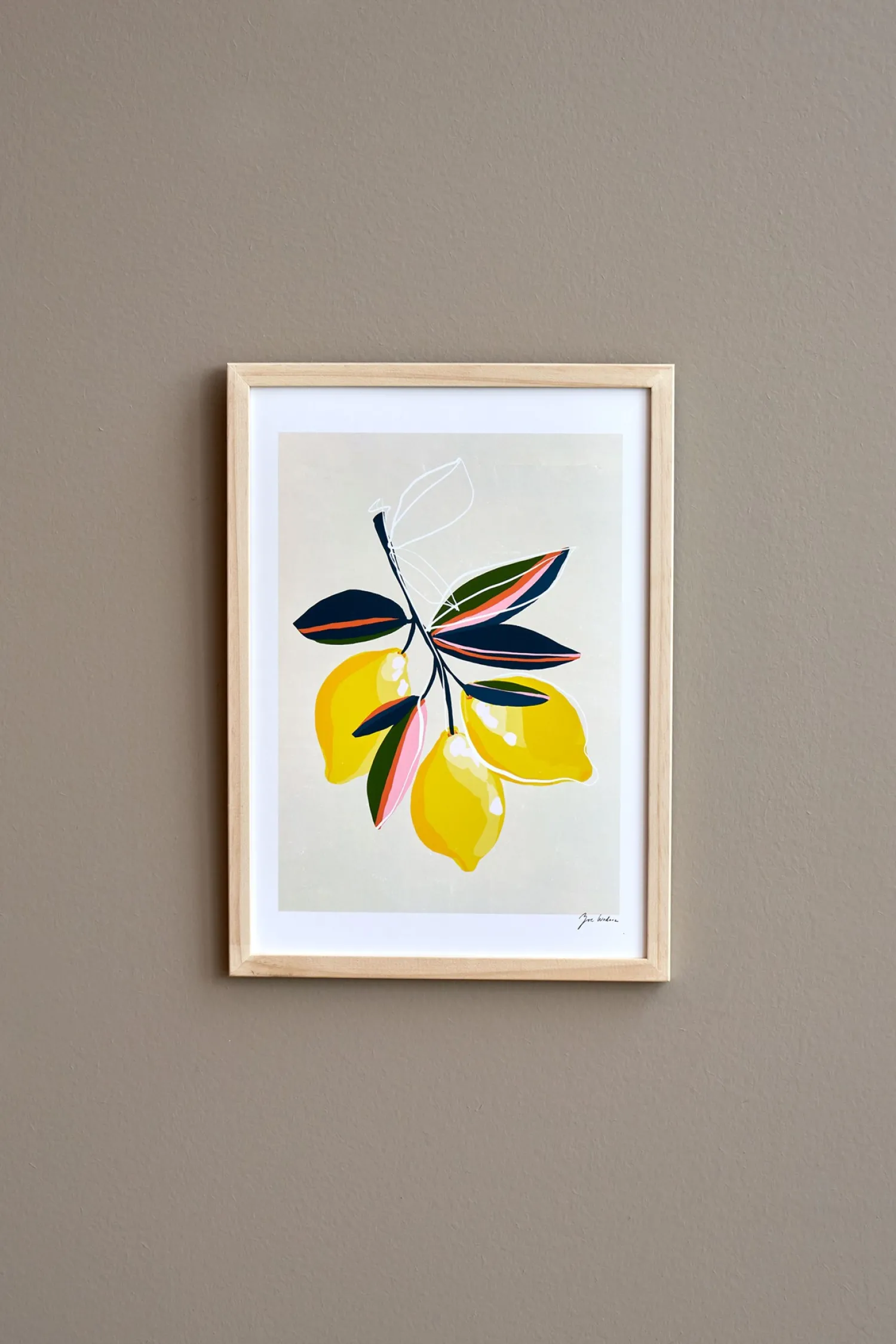 Søstrene gør Dem venligst opmærksom på, at denne vare kun forhandles online.Plakaten kommer i et sikkert paprør. Rammen er ikke inkluderet. Lemons-plakaten fra Poster & Frame er trykt på papir af høj kvalitet for at sikre, at kunstværket kan give Dem glæde i mange år fremover. Illustrationen er af PSTR studio og er i et A4-format.Anna og Clara er glade for at have smuk kunst på deres vægge, ikke kun for at pryde deres hjem, men også for at give inspiration til deres kreative sysler. Hver morgen, når hun kommer ind i køkkenet, fyldes Anna af glæde og begejstring ved synet af de smukke citroner, som hun har hængt op på køkkenvæggen. De lyse og livlige farver vækker sanserne og løfter humøret.