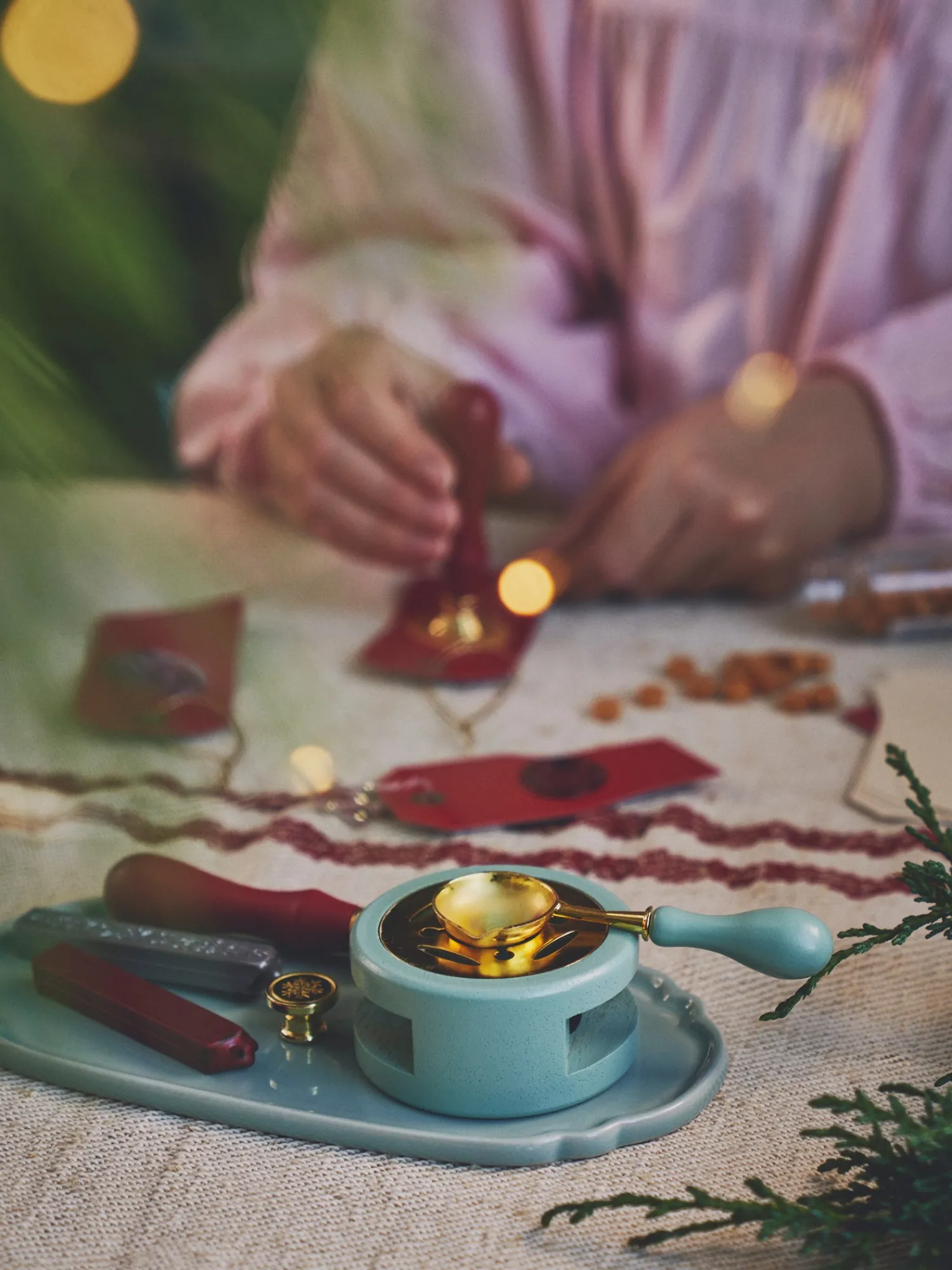 Søstrenes voksbrænder og ske er lavet af 100 % FSC®-certificeret fyrretræ samt jern. Brænderen har plads til et fyrfadslys i bunden til at smelte voksen i skeen.