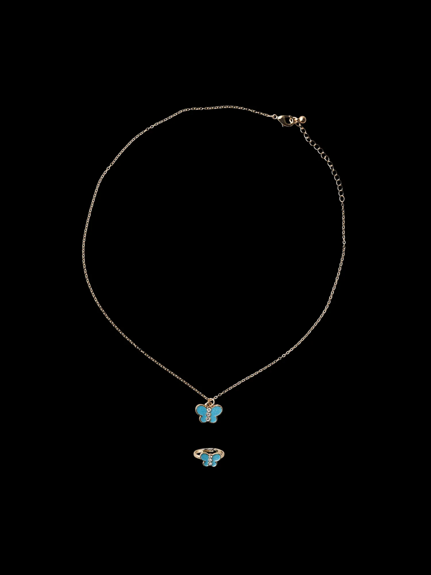 Søstrenes smykkesæt til børn består af en fin halskæde og en fingerring.