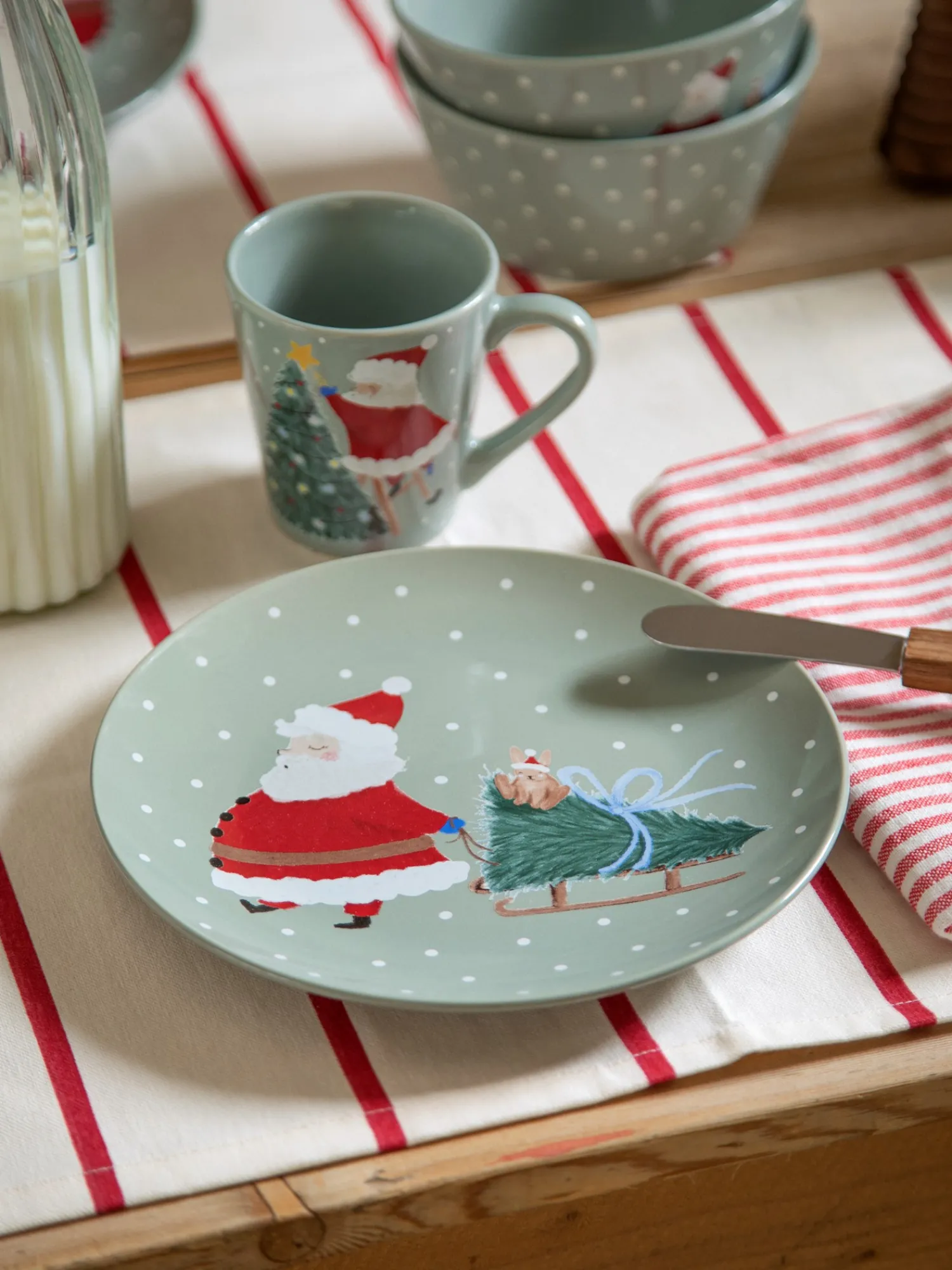 Søstrenes dækkeserviet er lavet af STANDARD 100 by OEKO-TEX®-certificeret bomuld og har dejlige julefarver for et festligt udtryk.