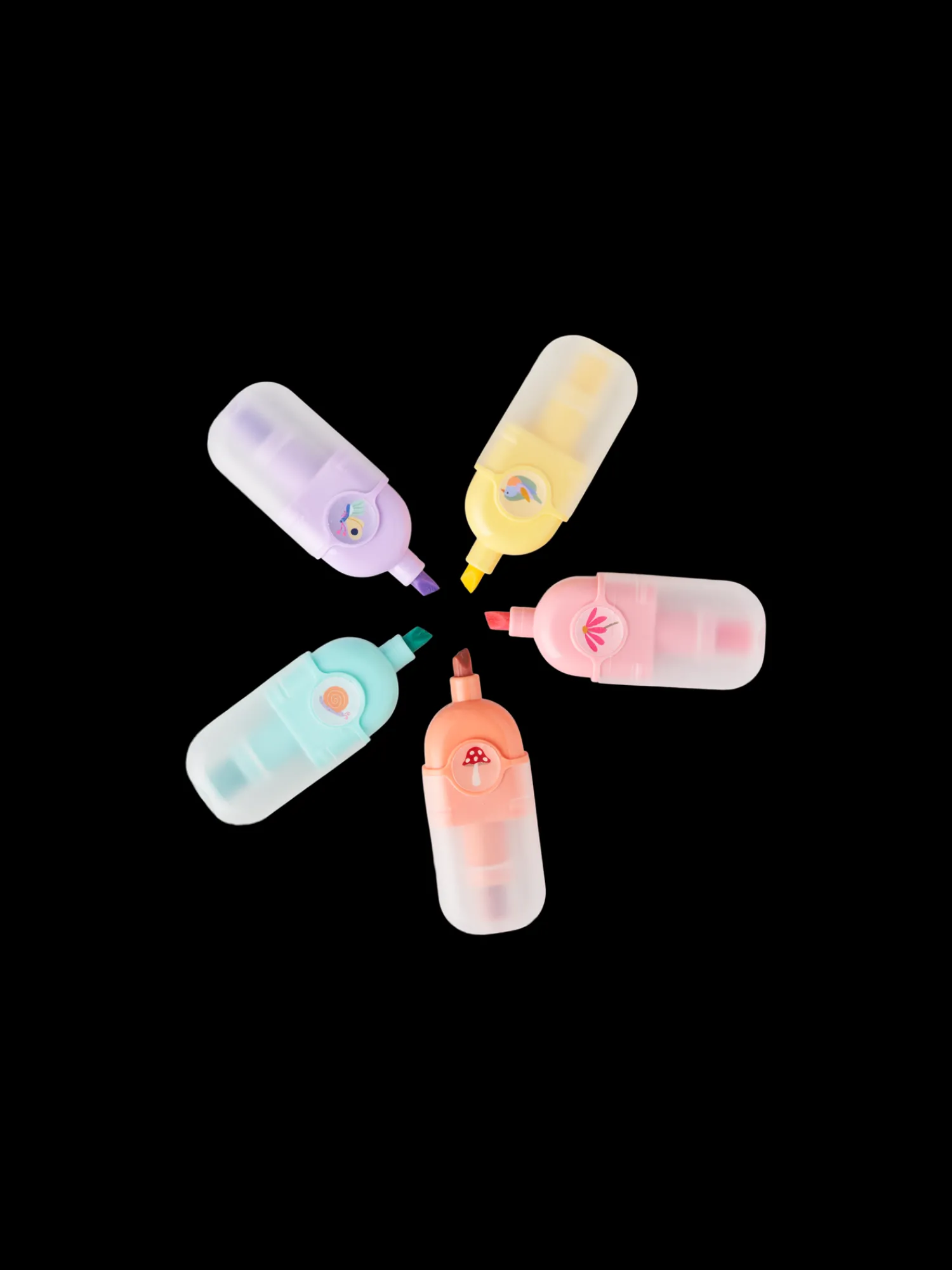 Søstrenes highlightere i forskellige farver har hver især et sødt design.
