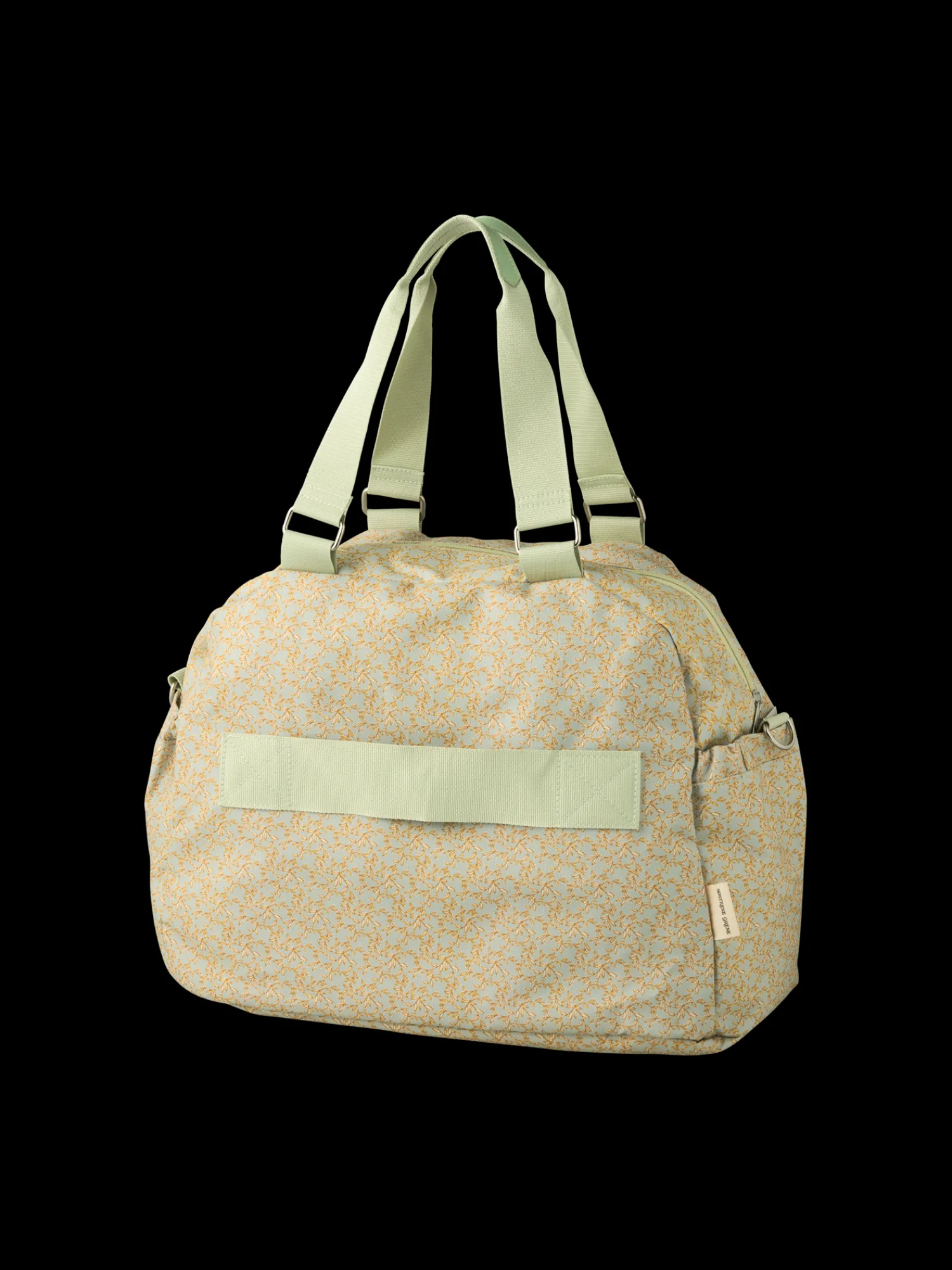 Søstrenes weekendtaske har en justerbar skulderrem, en stor forlomme og en rem bagpå, der kan skubbes ned på et kufferthåndtag.